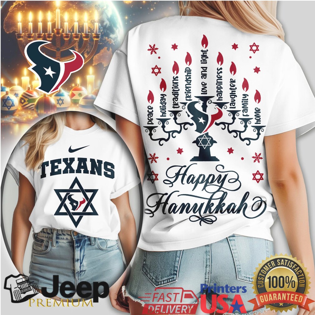 (Houston Texans Happy Hanukkah Menorah Star of David NFL T Shirt)