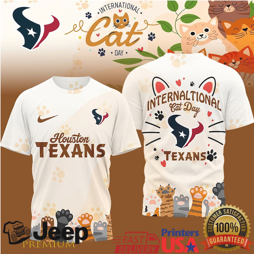 (Houston Texans International Cat Day Fan T Shirt)Several high-profile veterans are expected to hit the open market or change teams as the new league year approaches. The Atlanta Falcons are slated to release Kirk Cousins, who may seek a return to the Minnesota Vikings to provide a veteran presence for J.J. McCarthy. Other significant “cut candidates” include Alvin Kamara of the Saints and Aaron Jones of the Vikings, both of whom faced declining production and high cap hits in 2025. In the trade market, the Buffalo Bills acquired wide receiver D.J. Moore from the Chicago Bears for a 2026 second-round pick, giving Josh Allen a premier target. Defensively, the Houston Texans secured Houston Texans International Cat Day Fan T Shirt with a one-year, $40.1 million extension, ensuring the All-Pro remains a cornerstone of their defense through 2027.