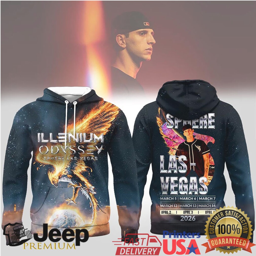 (Illenium Odyssey Sphere Las Vegas 2026 Phoenix Graphic T Shirt)Still, your point is germane. Matches that started at 12:00 pm in the three host countries would air at times convenient to Europe, Africa, and parts of Asia. And, of course, while it would be inconvenient to those in those time zones, since it’s a weekday and most people will be at work, since some places in the world will be inconvenienced, regardless of when the matches start, it makes sense to schedule Illenium Odyssey Sphere Las Vegas 2026 Phoenix Graphic T Shirt and mid-day games. The early illustrations of game/ hotel packages are frighteningly high, particularly as the competition reaches its climax. However, it’s a market and there will be those willing to pay, particularly in the corporate sector but the market will adjust if prices are too high to sustain demand. Regular football fans are likely to be priced out but that’s been the trend lately. I went to one game last year and bought the cheapest seats I could find – $300 each for an early game.