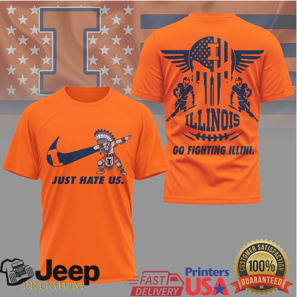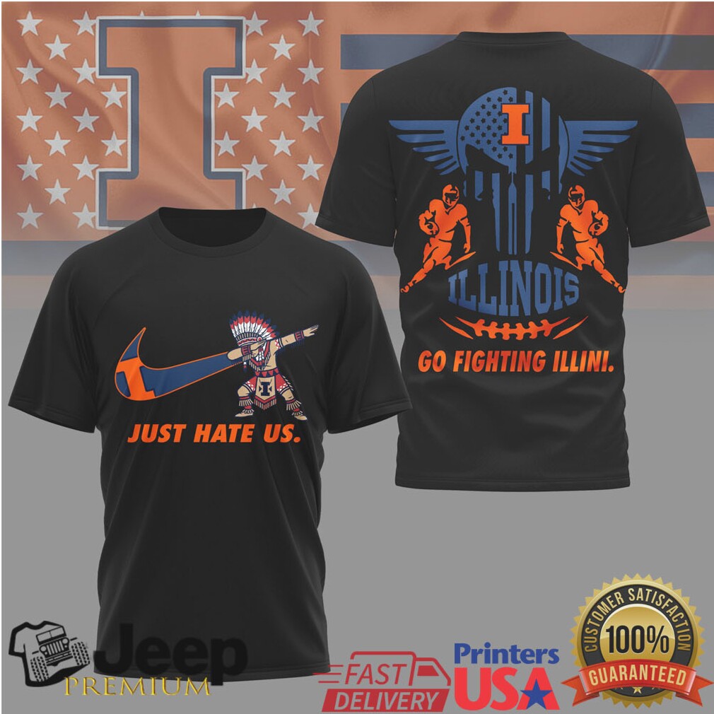 (Illinois Fighting Illini Just Hate Us Dabbing Mascot Skull Graphic T Shirt)