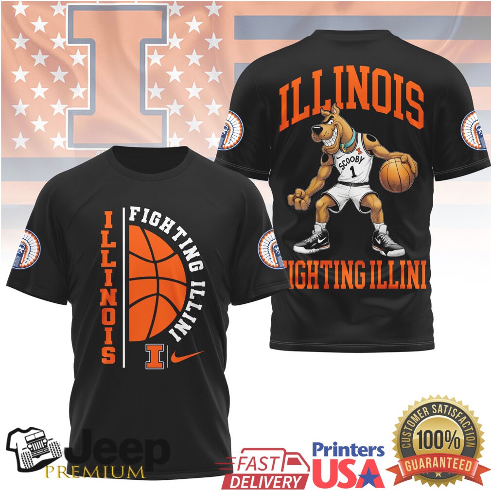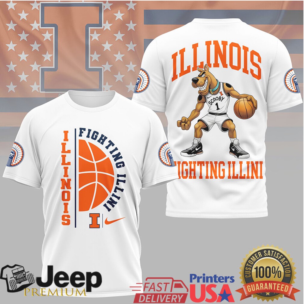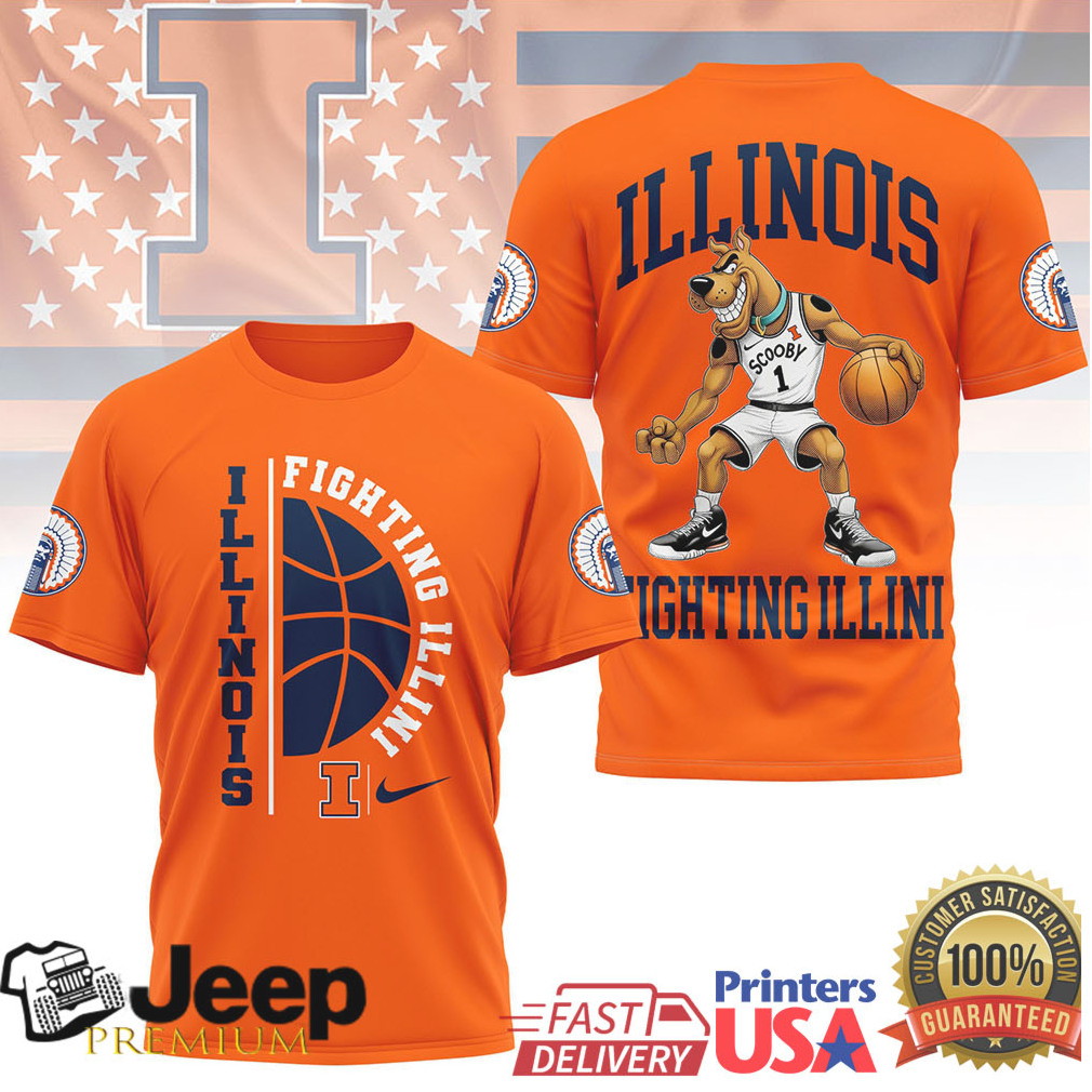 Illini fans meet Scooby-Doo! This fun Illinois Fighting Illini basketball tee features Scooby-Doo in orange and blue Illini gear, perfect for Big Ten fans who love their team and a touch of classic cartoon charm.