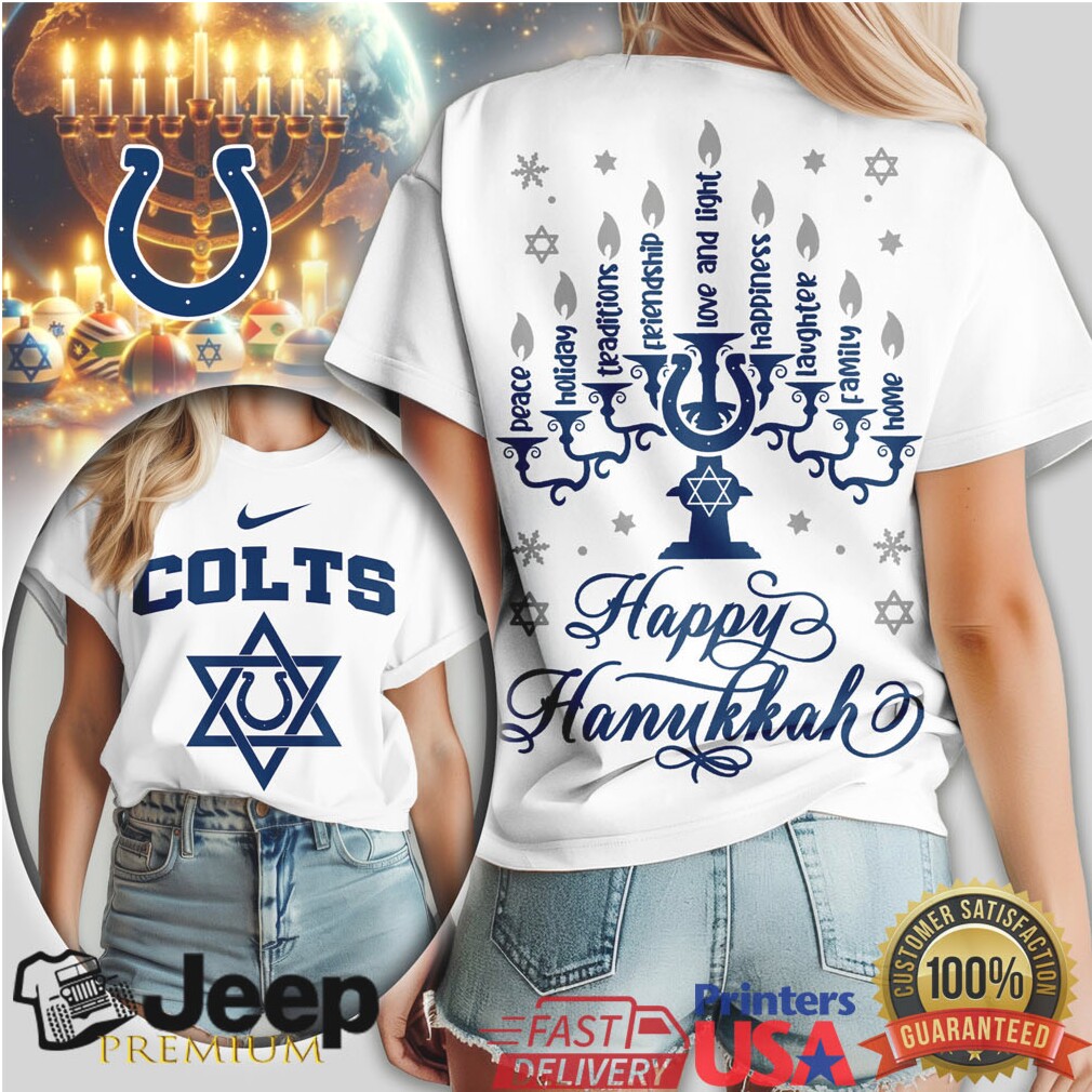 (Indianapolis Colts Happy Hanukkah Menorah Star of David NFL T Shirt)
