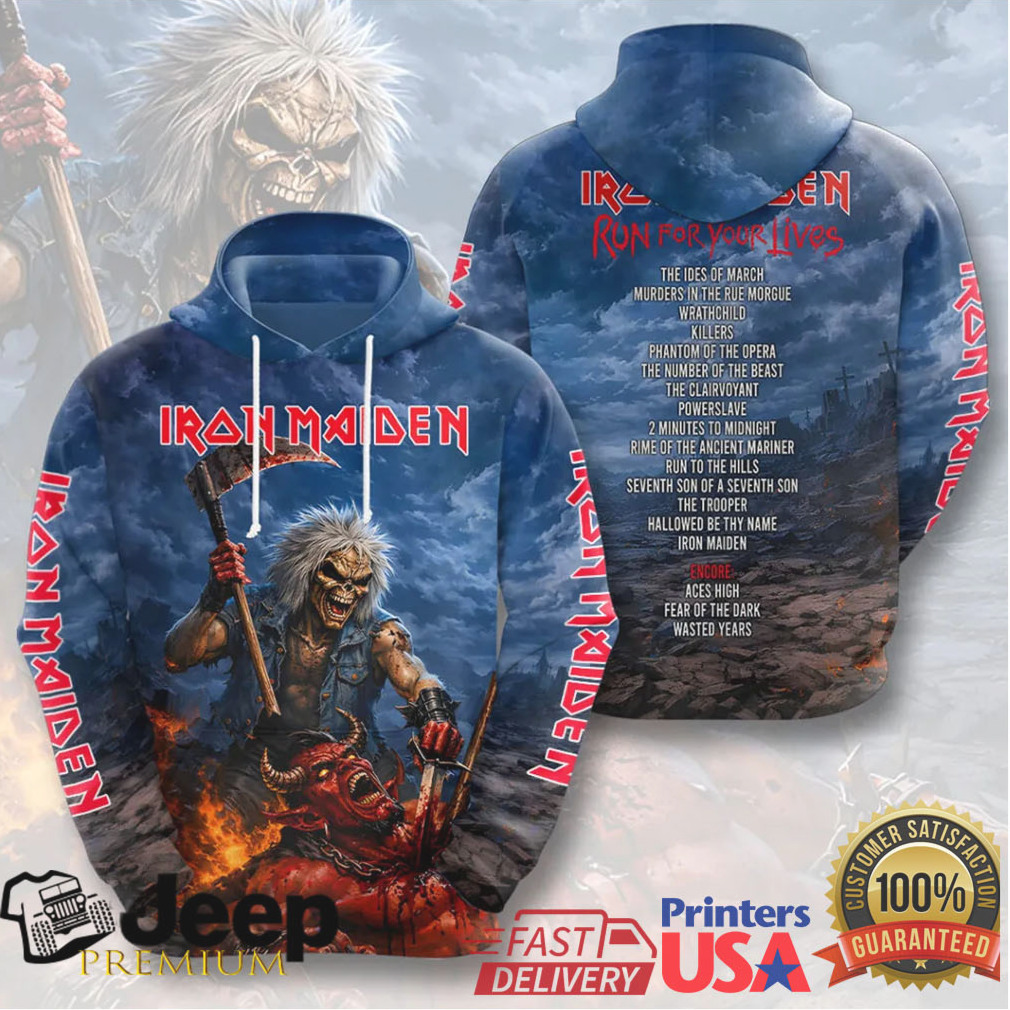 (Iron Maiden Run For Your Lives Eddie vs Devil Setlist 3D All Over Print T Shirt)Iron Maiden Run For Your Lives Eddie vs Devil Setlist 3D All Over Print T Shirt, Treat yourself or make a great gift for your loved ones