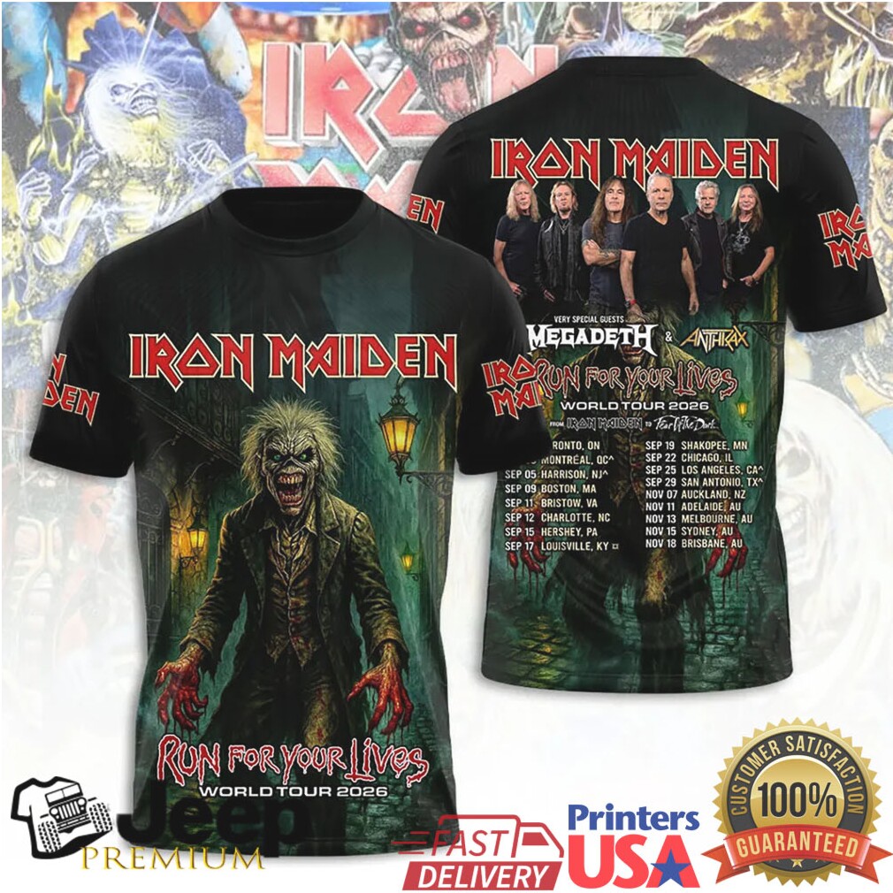 (Iron Maiden Run For Your Lives World Tour 2026 3D All Over Print T Shirt)Iron Maiden Run For Your Lives World Tour 2026 3D All Over Print T Shirt, Treat yourself or make a great gift for your loved ones