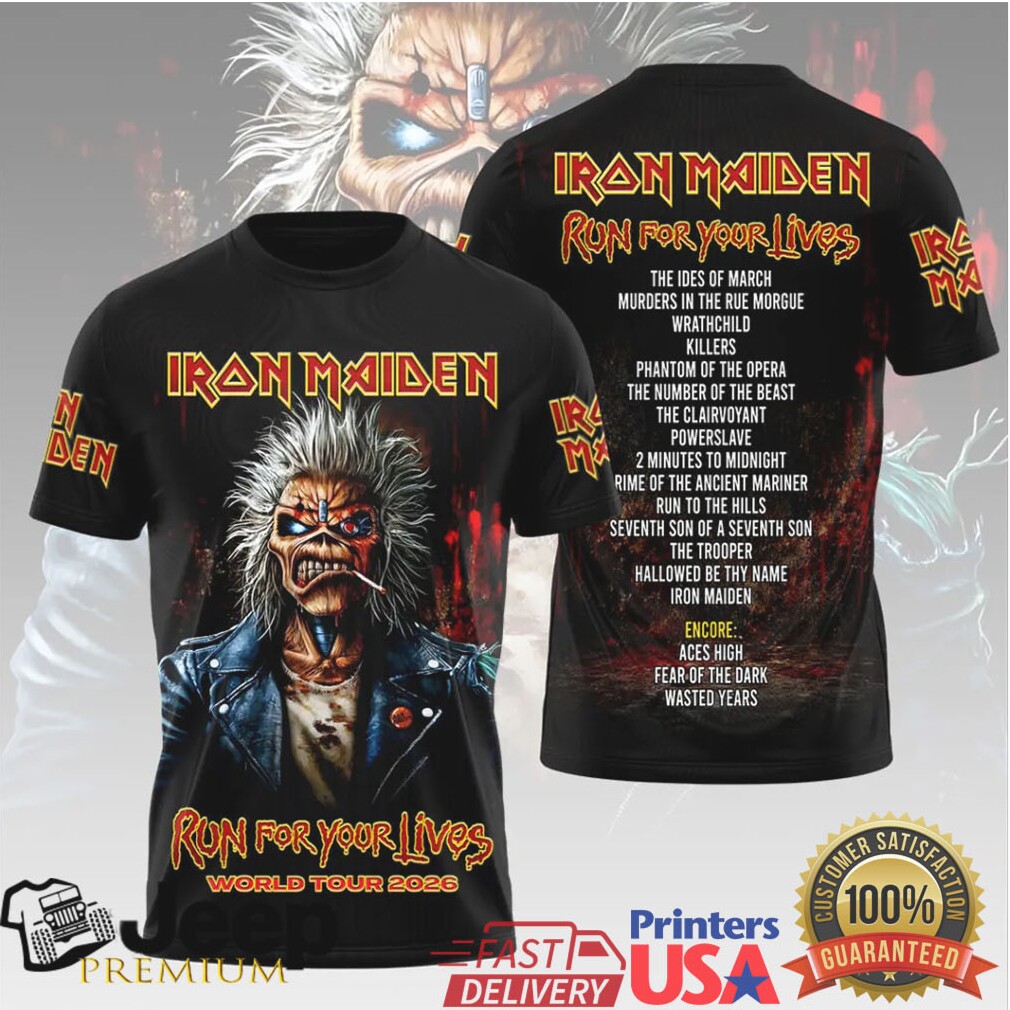 (Iron Maiden Run For Your Lives World Tour 2026 Leather Jacket Eddie Black T Shirt)Iron Maiden Run For Your Lives World Tour 2026 Leather Jacket Eddie Black T Shirt, Treat yourself or make a great gift for your loved ones