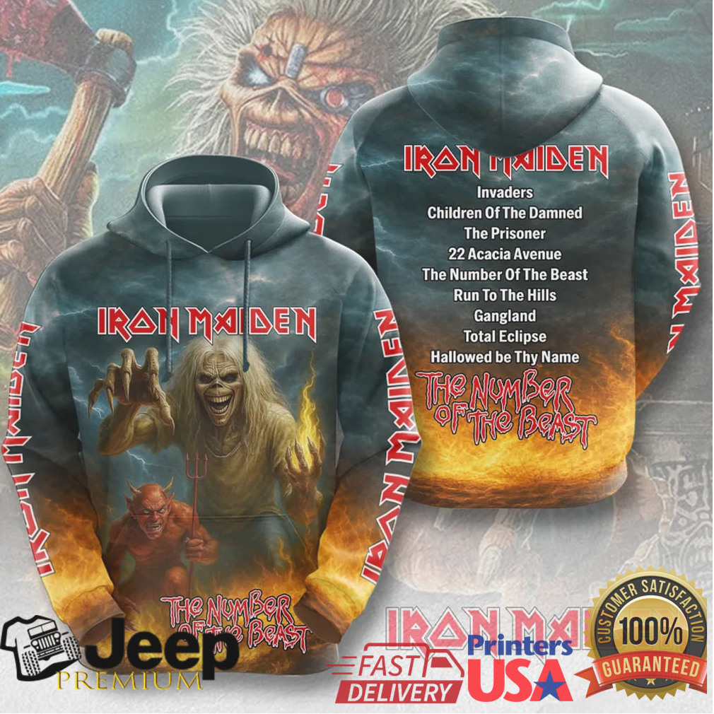 (Iron Maiden The Number Of The Beast Album Cover All Over Print T Shirt)In the NBA, the Oklahoma City Thunder have officially become the first team in the Western Conference to clinch a playoff spot, a testament to their flawless rebuilding process, complete with fan Iron Maiden The Number Of The Beast Album Cover All Over Print T Shirt to match. Sitting at 55-15, the Thunder have utilized a 10-game winning streak to distance themselves from a chaotic pack of contenders that includes the Lakers, Spurs, and Timberwolves. Shai Gilgeous-Alexander continues to defy logic, extending his streak of 20-point games to an NBA-record 130 straight contests, a level of consistency that has made him the frontrunner for the 2026 MVP. The Thunder’s success, celebrated in championship Iron Maiden The Number Of The Beast Album Cover All Over Print T Shirt, is built on a foundation of elite perimeter defense and a “positionless” offensive scheme that allows multiple playmakers to thrive simultaneously. For the rest of the West, the Thunder represent a terrifyingly deep and disciplined opponent that is finally ready to translate regular-season success into a deep playoff run.