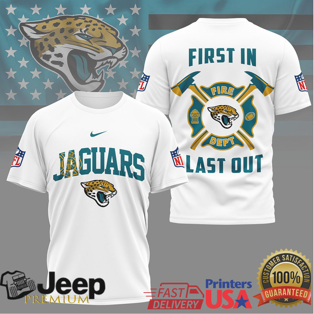 (Jacksonville Jaguars Firefighter Dept First In Last Out T Shirt)Jacksonville Jaguars Firefighter Dept First In Last Out T Shirt, Treat yourself or make a great gift for your loved ones