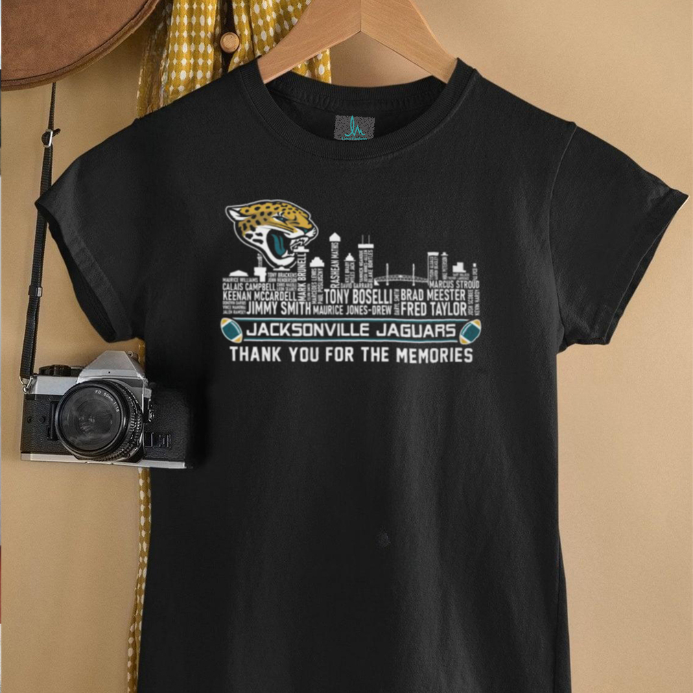 ()Jacksonville Jaguars football players legend thank you for the memories city skyline shirt, Treat yourself or make a great gift for your loved ones