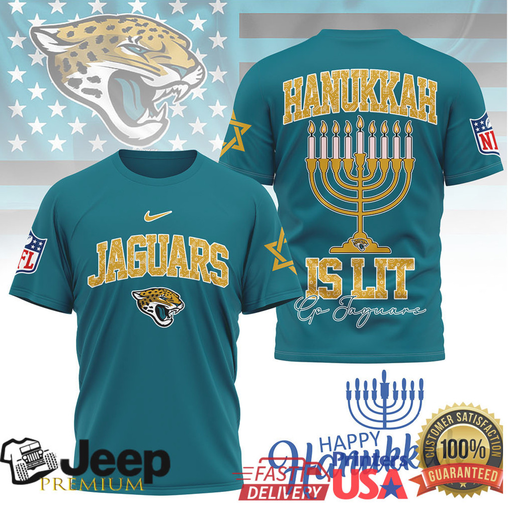 (Jacksonville Jaguars Hanukkah Is Lit Men’s NFL Fan T Shirt)