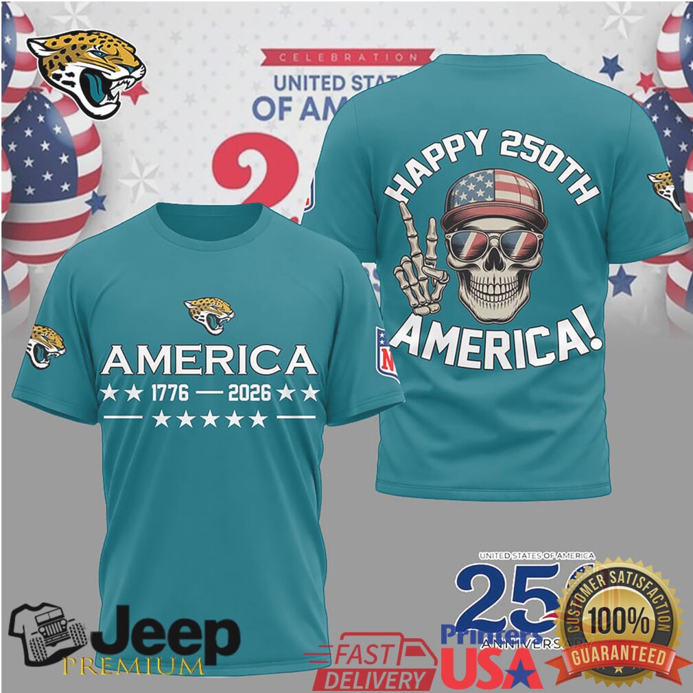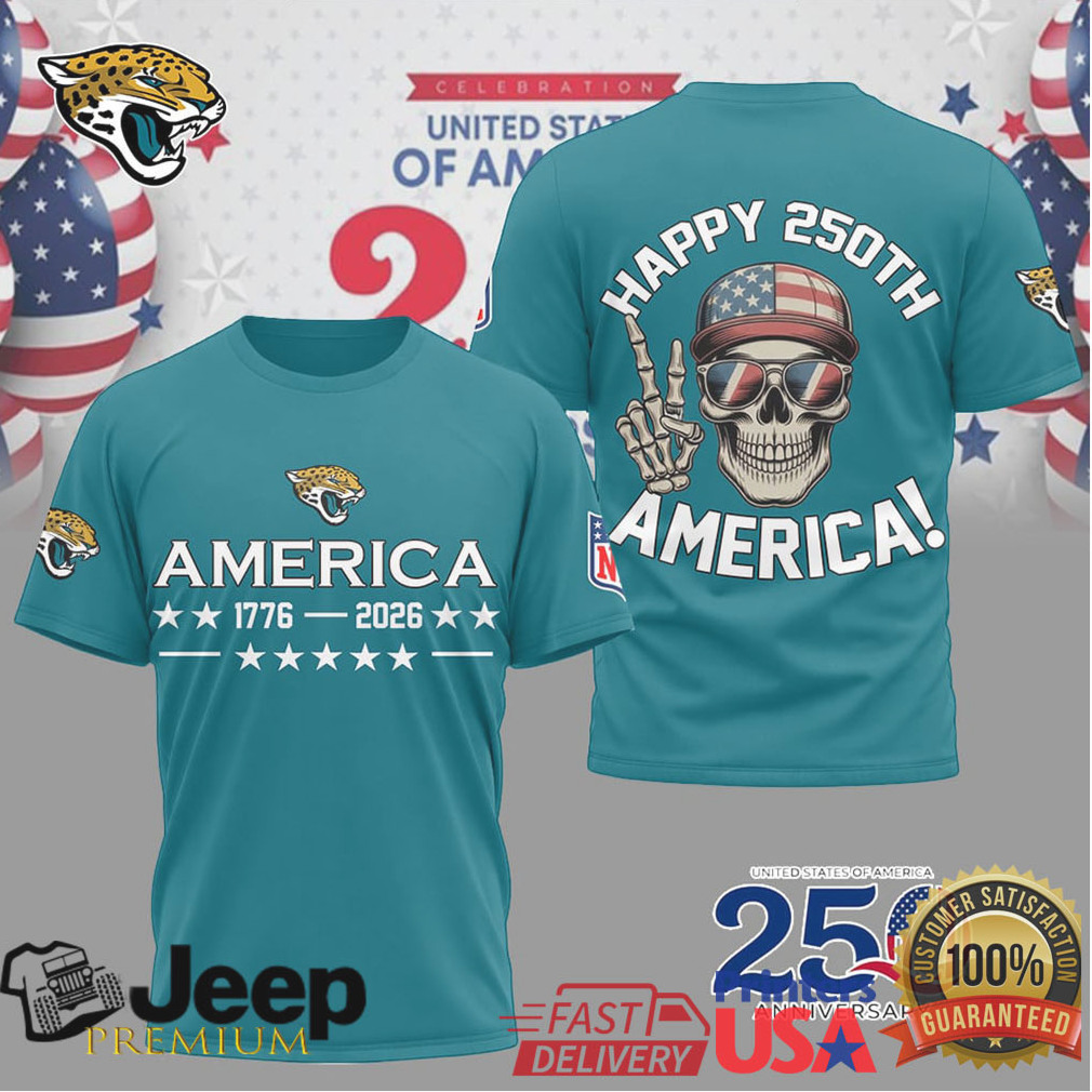 (Jacksonville Jaguars Happy 250th Anniversary America 1776 2026 Skull T Shirt)