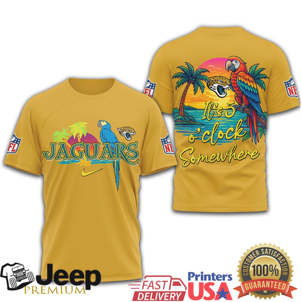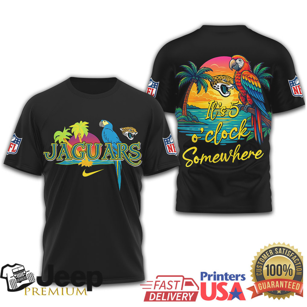 ()Jacksonville Jaguars NFL Tropical Parrot It’s 5 O’Clock Somewhere T Shirt, Treat yourself or make a great gift for your loved ones