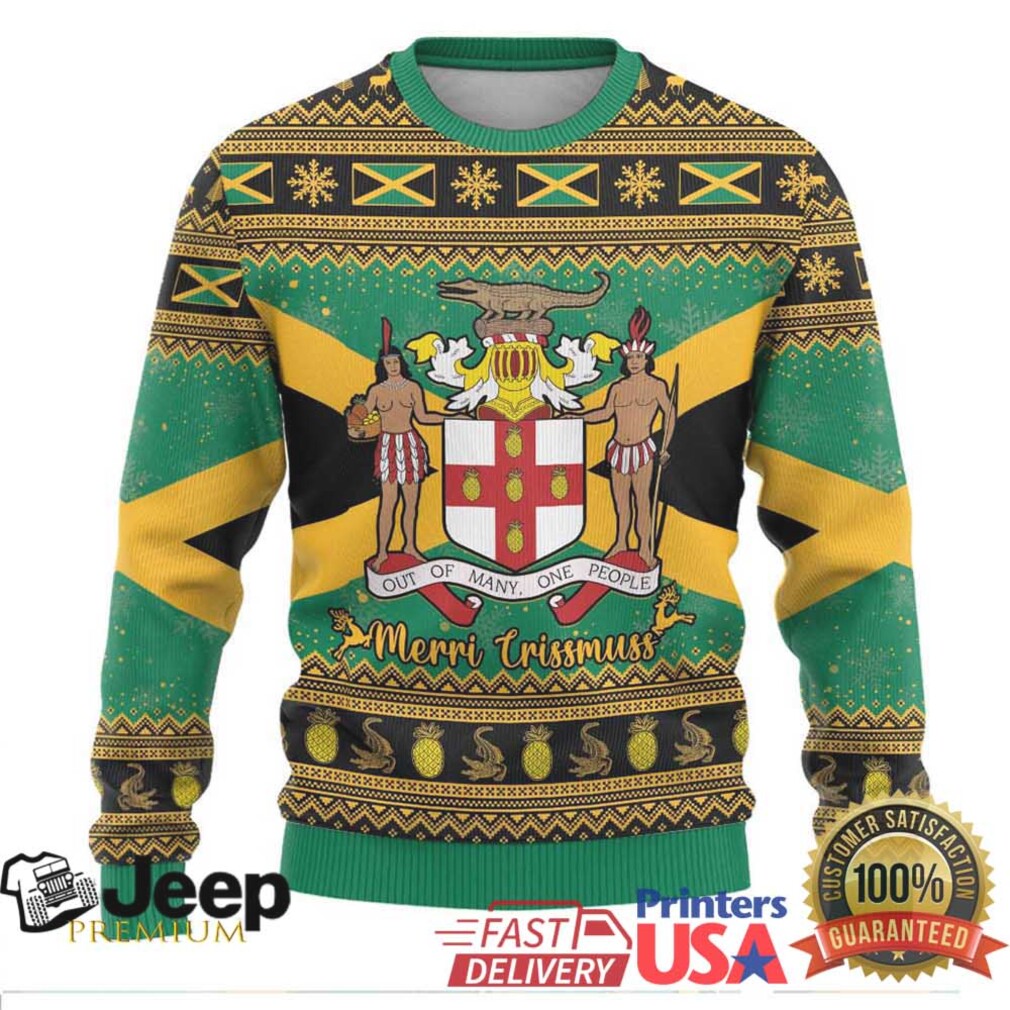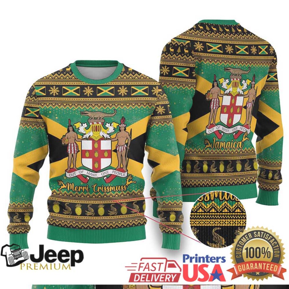 👕 About Jamaica Christmas Ugly Christmas Sweater Coat Of Arms Merri Crissmuss