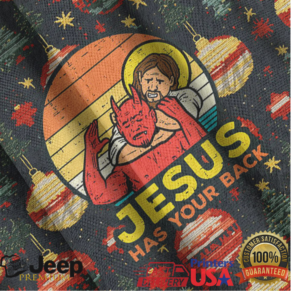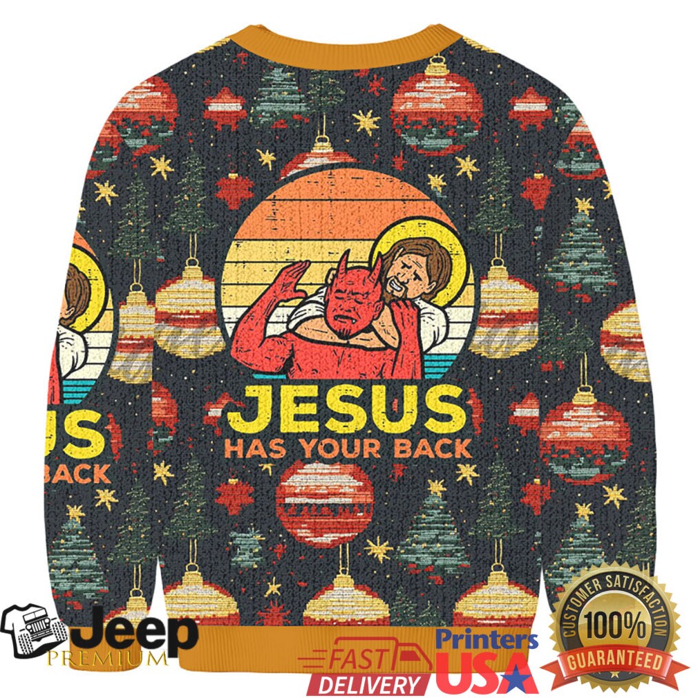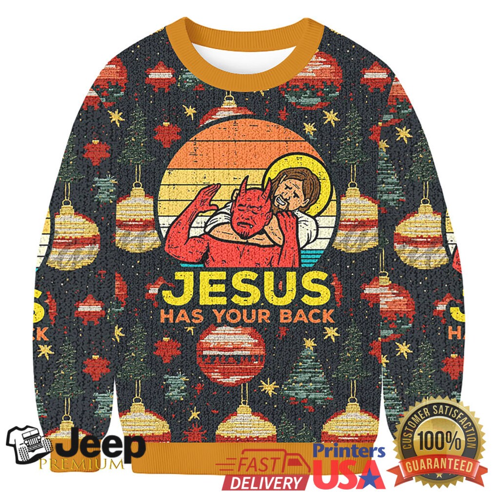 What Makes This Jesus Has Your Back Yellow Christmas Ugly Sweatshirt Epic
