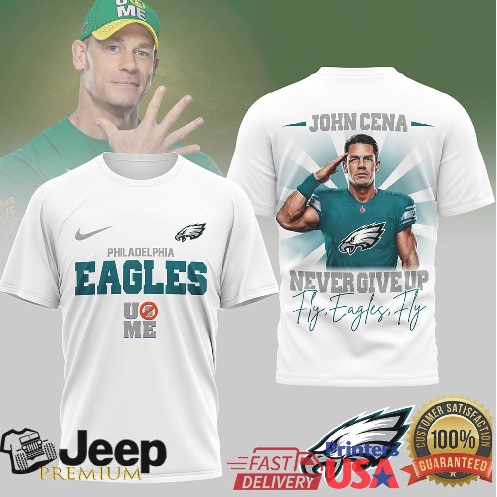 (John Cena Philadelphia Eagles “Never Give Up” Fly Eagles Fly T Shirt)