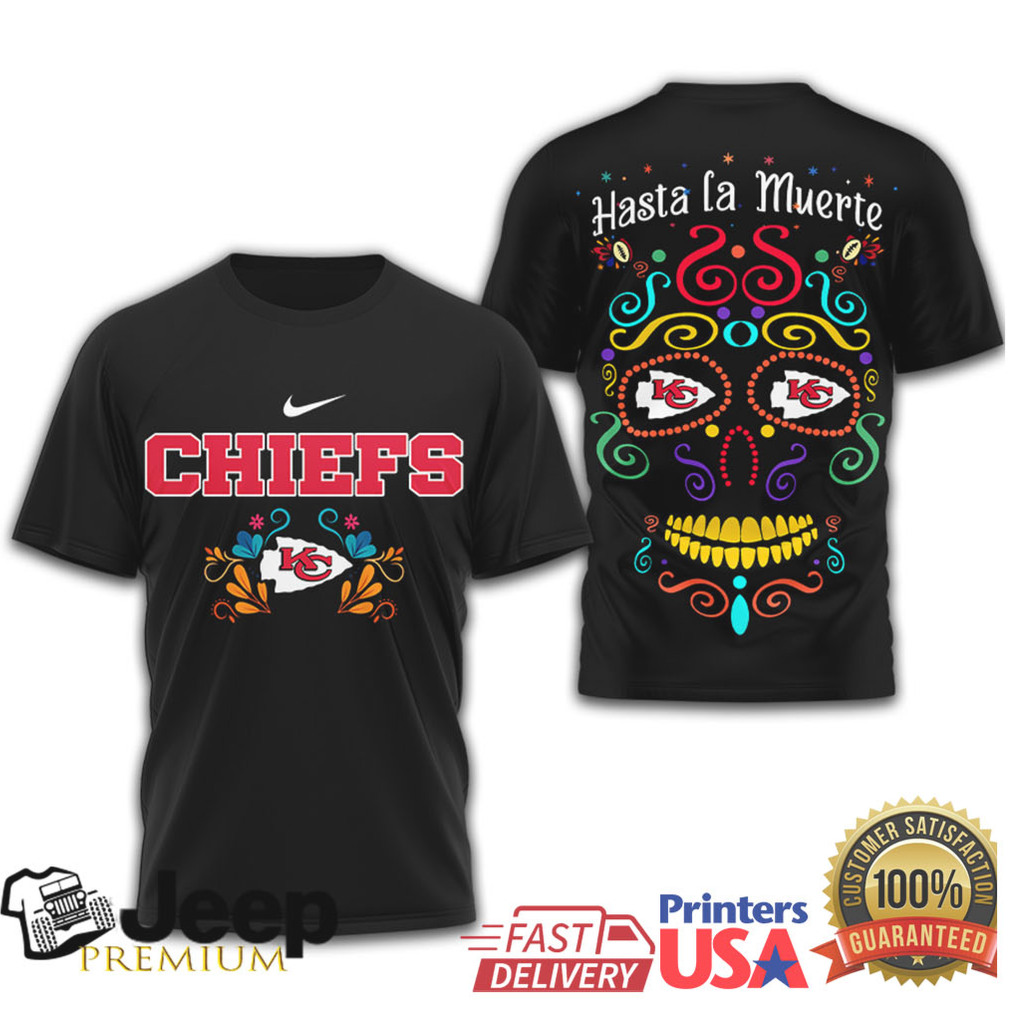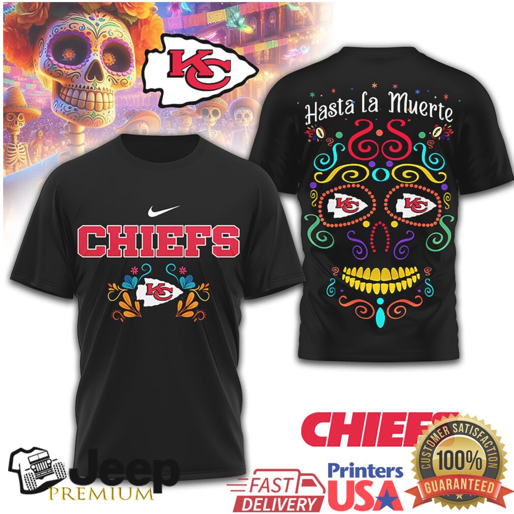 (Kansas City Chiefs Dia de los Muertos Sugar Skull Shirt Hasta La Muerte NFL Fan Tee)Kansas City Chiefs Dia de los Muertos Sugar Skull Shirt Hasta La Muerte NFL Fan Tee, Treat yourself or make a great gift for your loved ones
