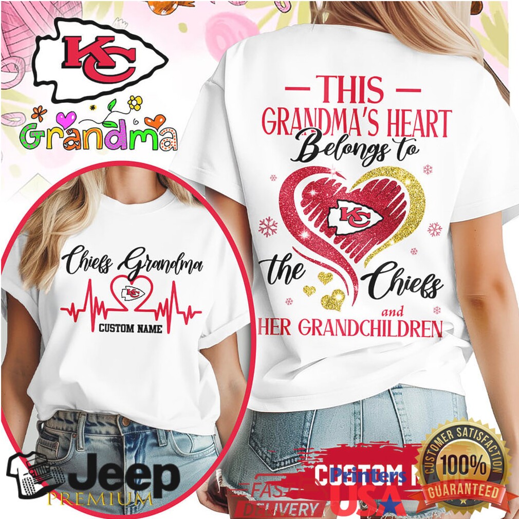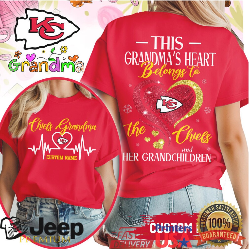 👕 About Kansas City Chiefs Grandma Personalized Heart T Shirt Custom Family Fan Gear