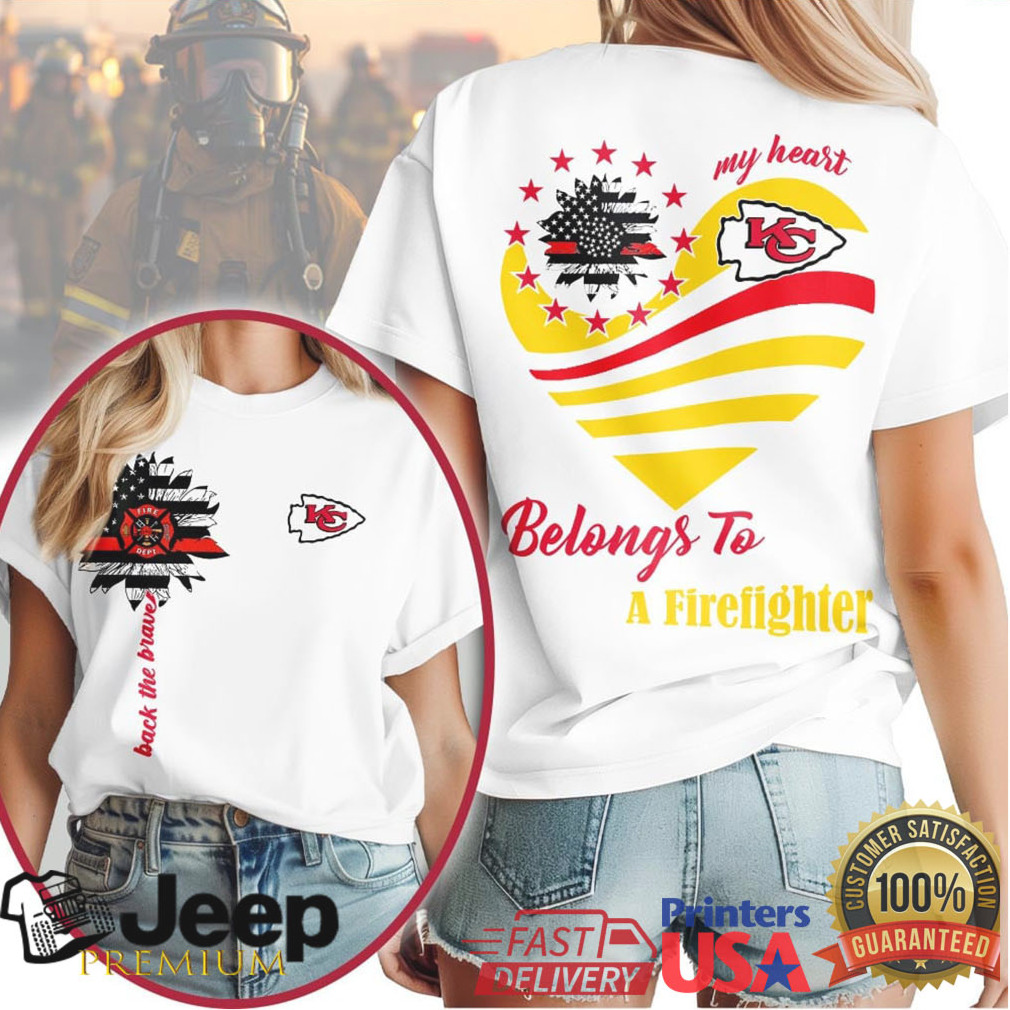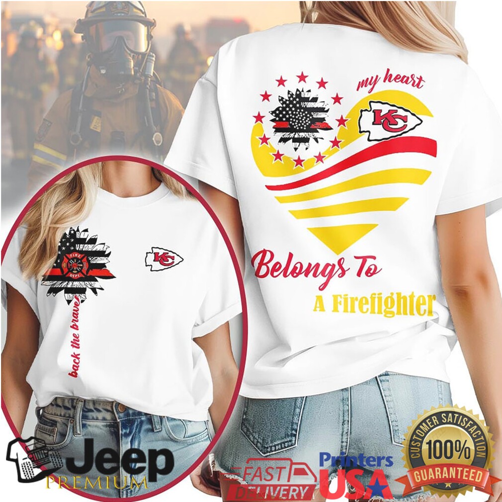 ()Kansas City Chiefs Official NFL My Heart Belongs To A Firefighter T shirt, Treat yourself or make a great gift for your loved ones