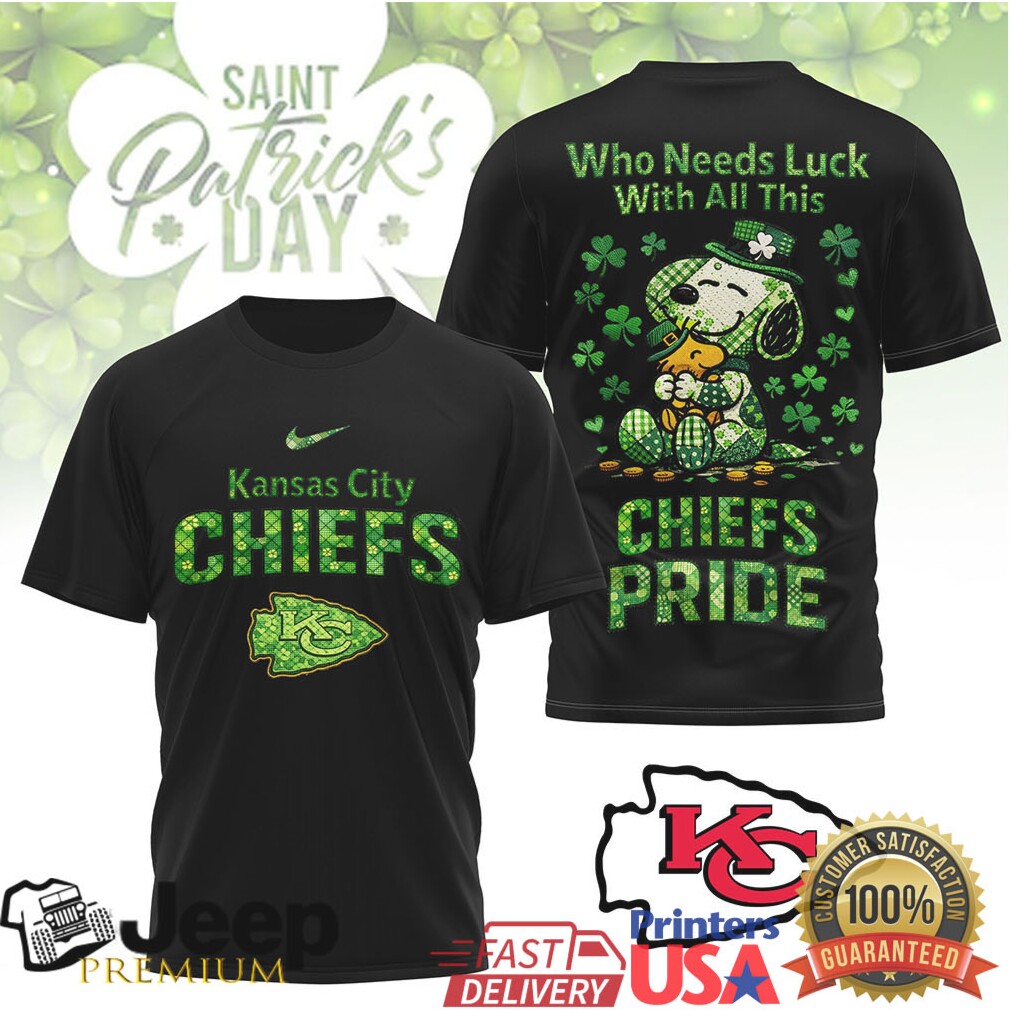 ()Kansas City Chiefs St. Patrick’s Day Snoopy Pride Green T Shirt, Treat yourself or make a great gift for your loved ones