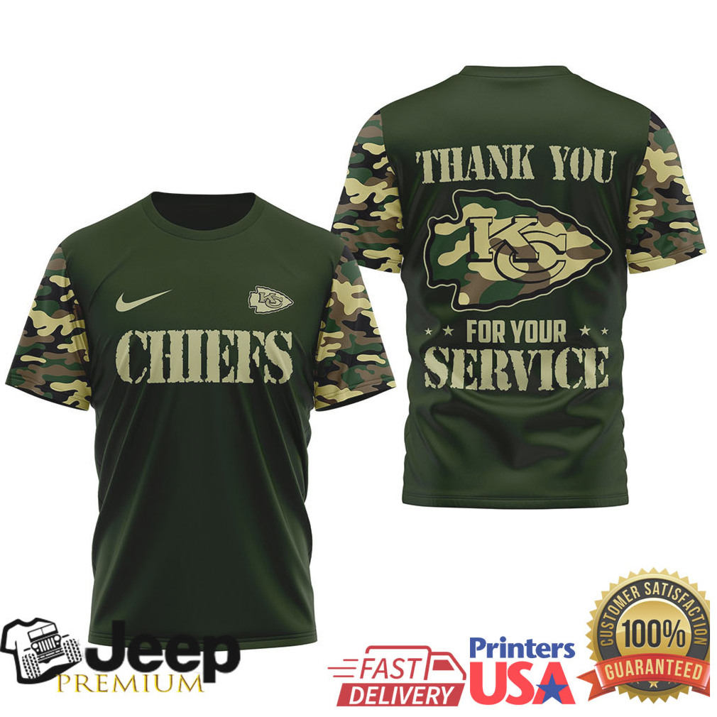 👕 About Kansas City Chiefs “Thank You For Your Service” Military Camo Sleeve T Shirt