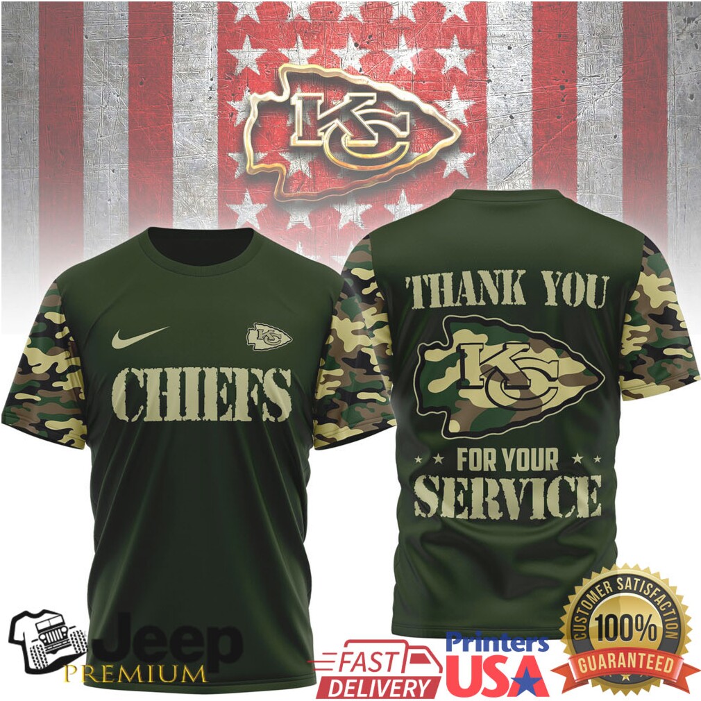 (Kansas City Chiefs “Thank You For Your Service” Military Camo Sleeve T Shirt)