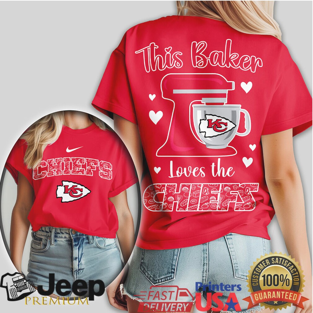 (Kansas City Chiefs “This Baker Loves the Chiefs” Kitchen Theme T Shirt)Kansas City Chiefs “This Baker Loves the Chiefs” Kitchen Theme T Shirt, Treat yourself or make a great gift for your loved ones