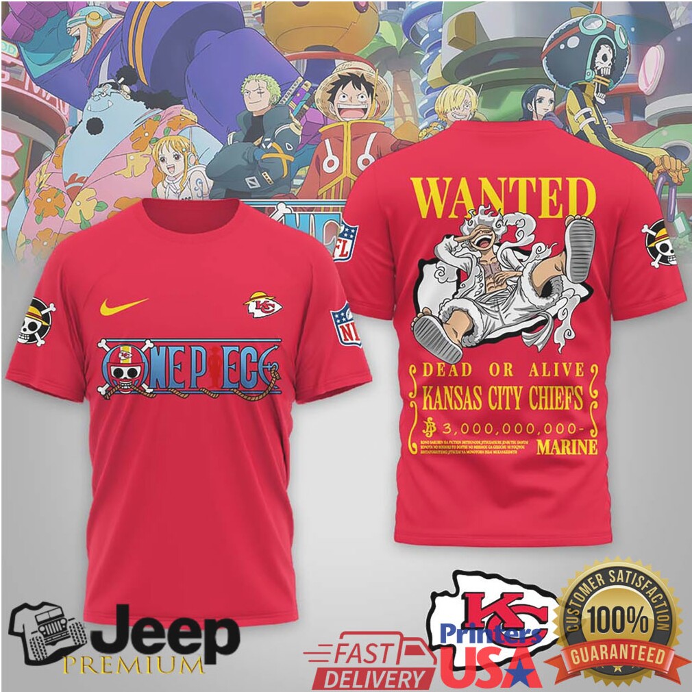 Kansas City Chiefs x One Piece Luffy Gear 5 Wanted Poster T Shirt, Treat yourself or make a great gift for your loved ones
