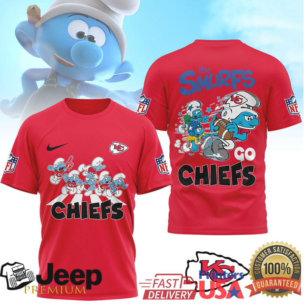 ()Kansas City Chiefs x The Smurfs Custom NFL Fan T Shirt, Treat yourself or make a great gift for your loved ones