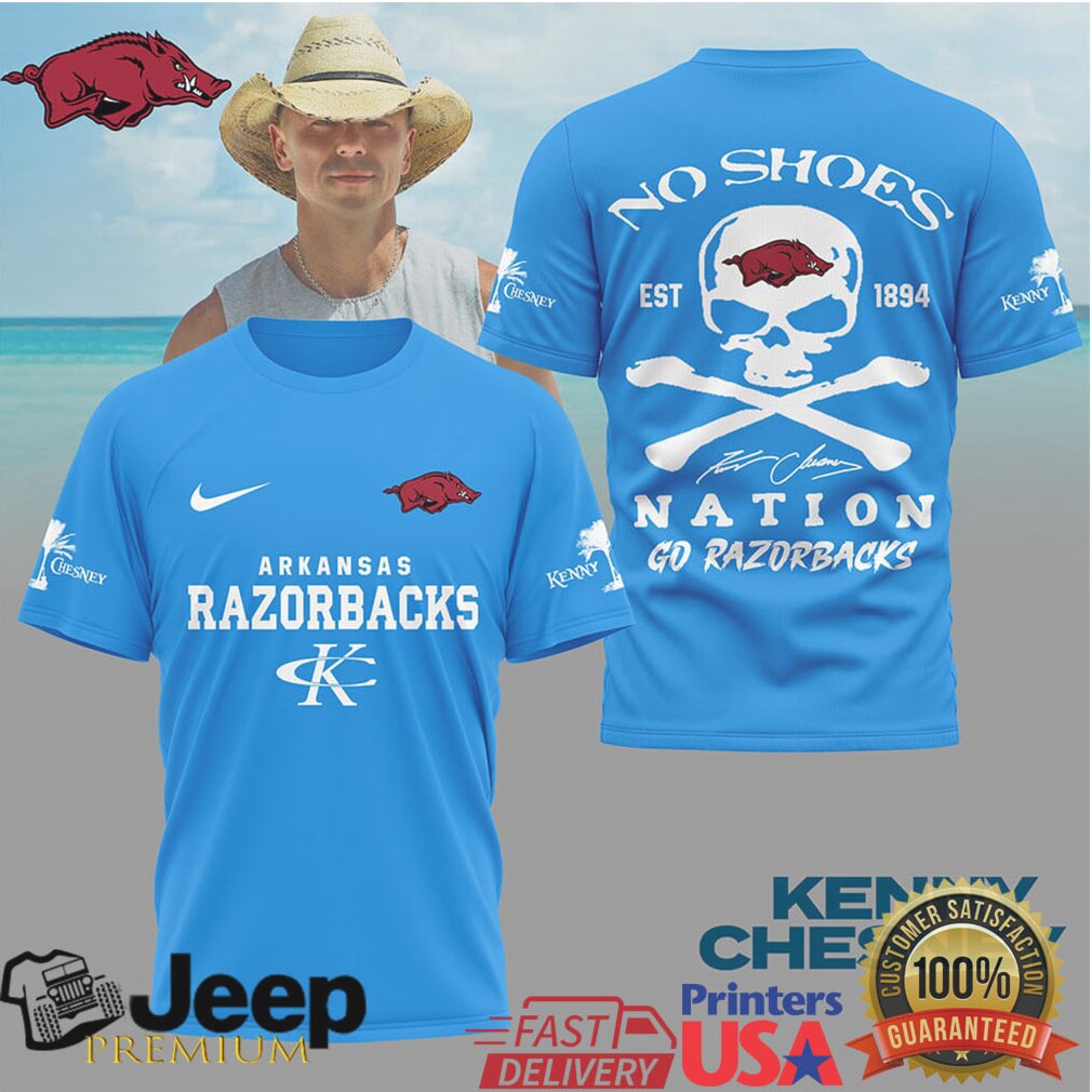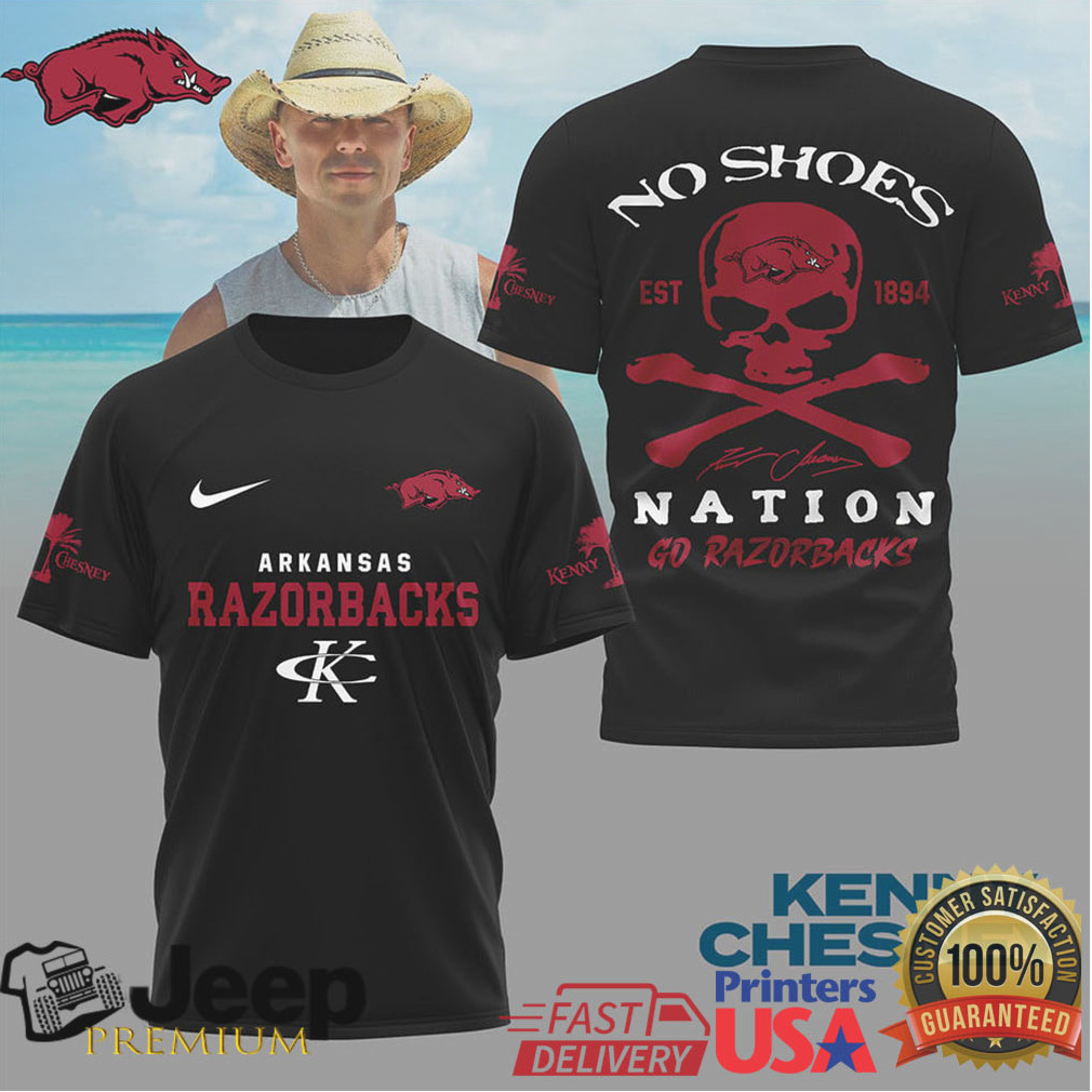 👕 About Kenny Chesney No Shoes Nation Arkansas Razorbacks Skull T Shirt