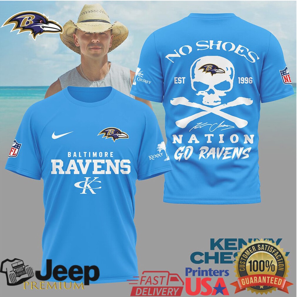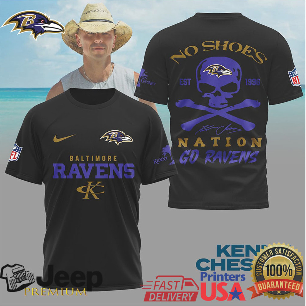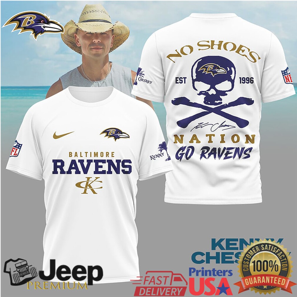 👕 About Kenny Chesney No Shoes Nation Baltimore Ravens Skull T Shirt