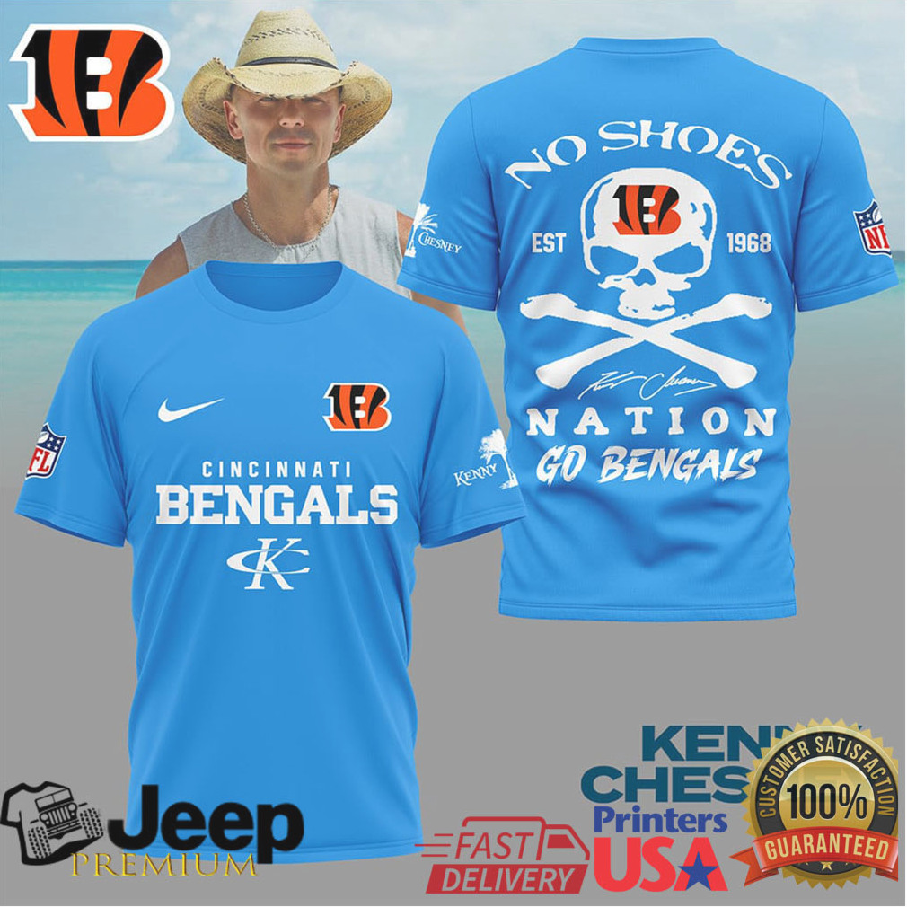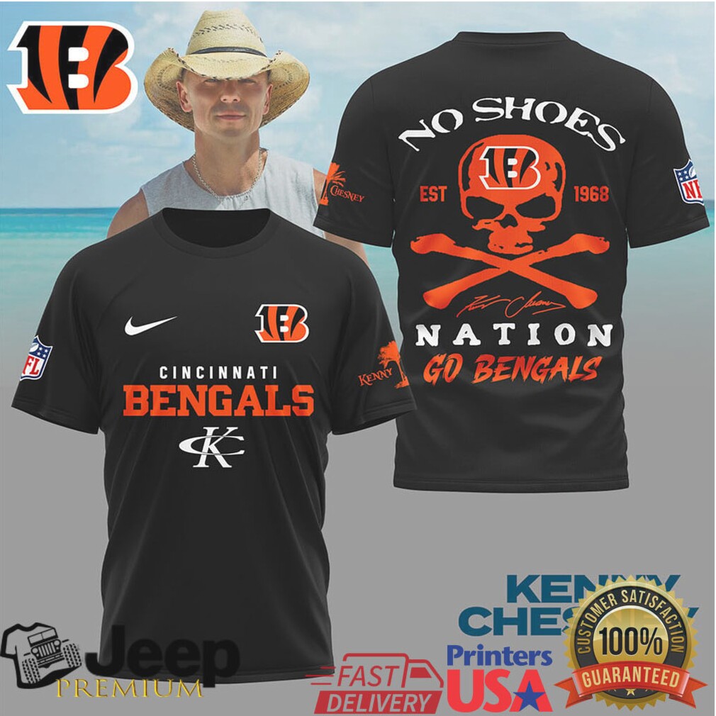 👕 About Kenny Chesney No Shoes Nation Cincinnati Bengals NFL T Shirt