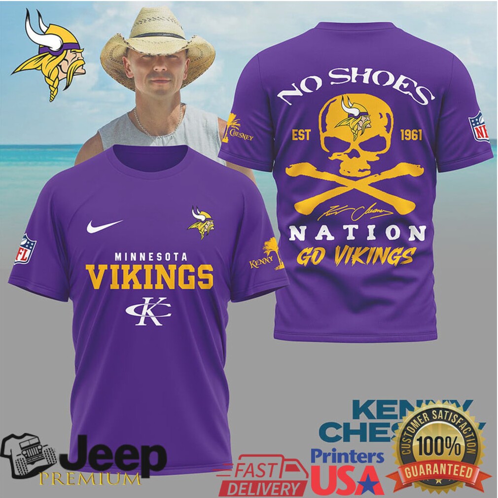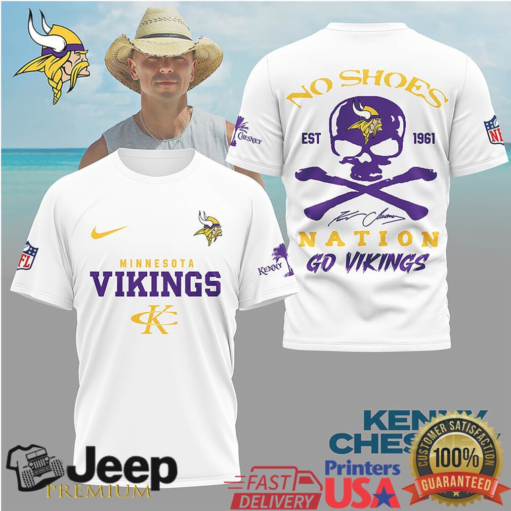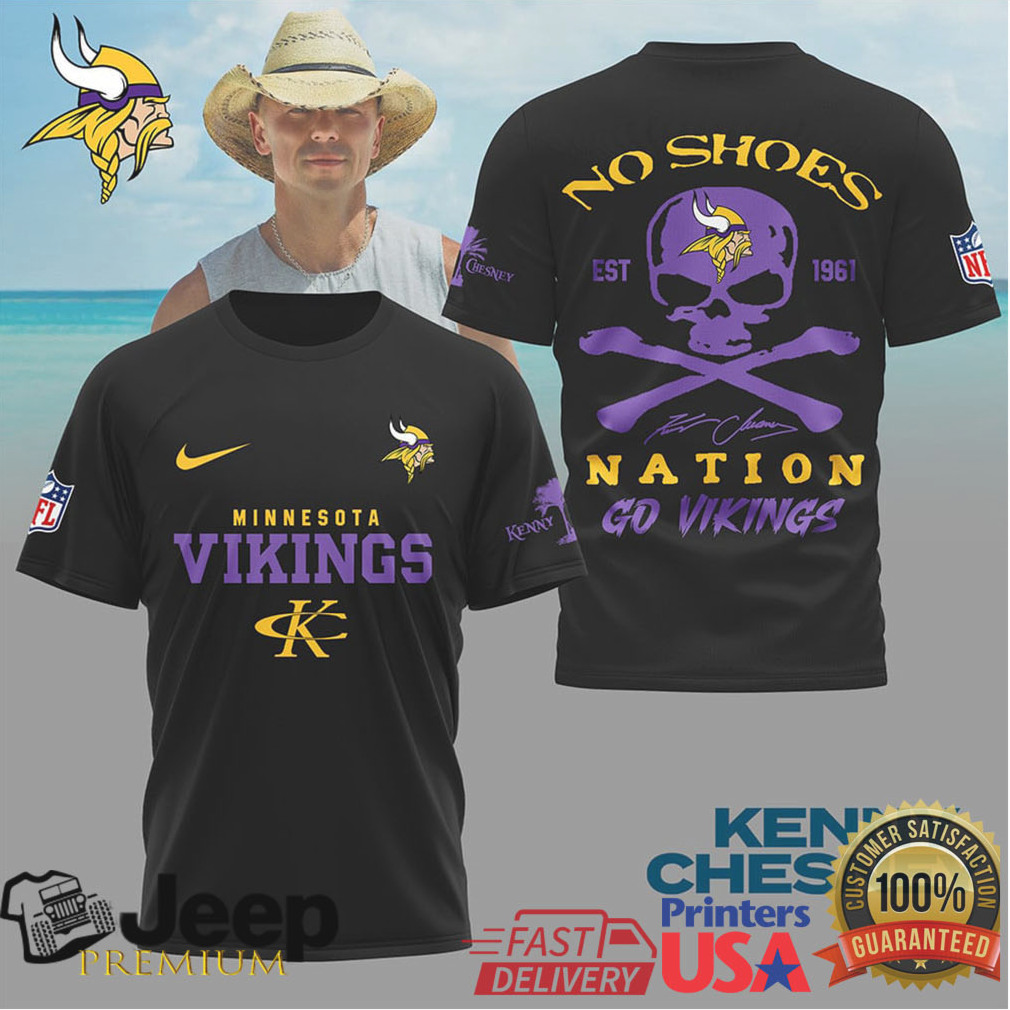 👕 About Kenny Chesney No Shoes Nation Minnesota Vikings Skull T Shirt