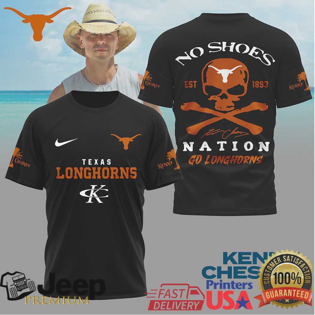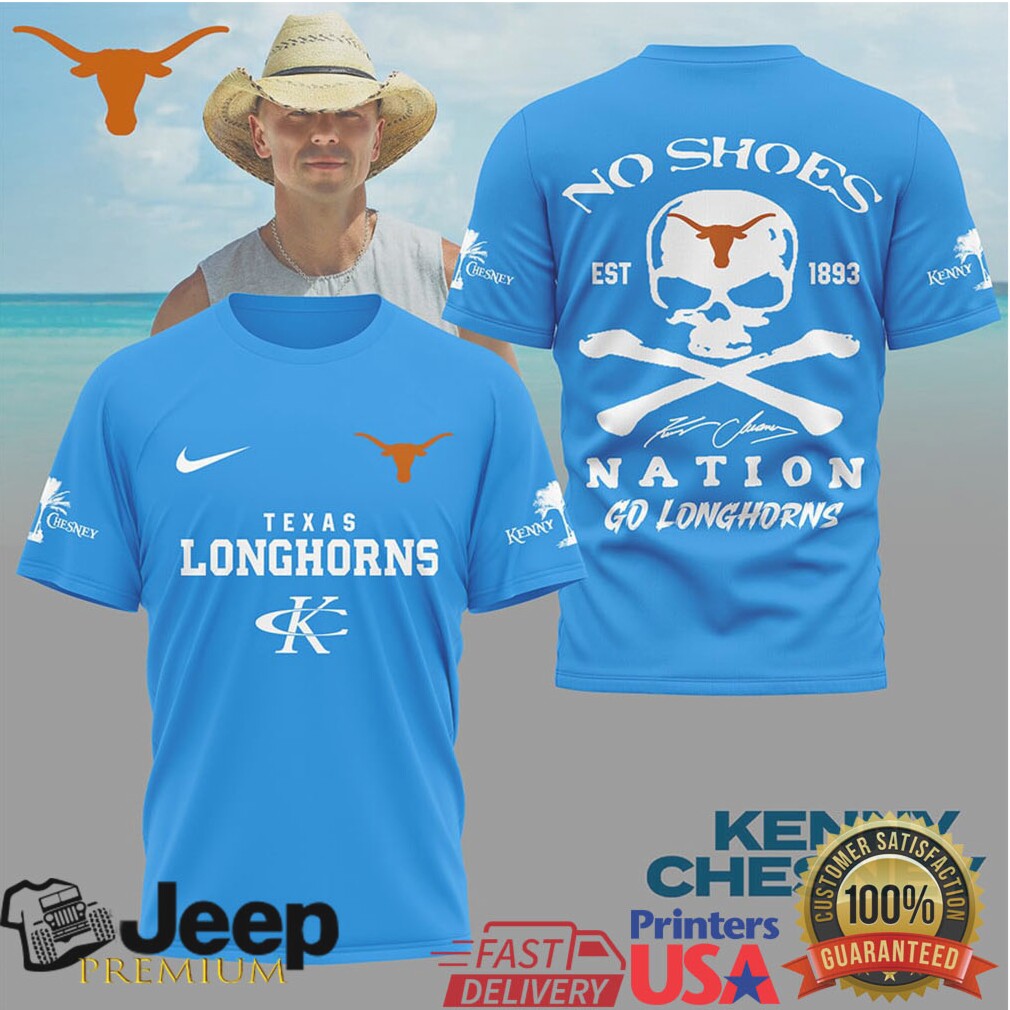 👕 About Kenny Chesney No Shoes Nation Texas Longhorns Skull T Shirt