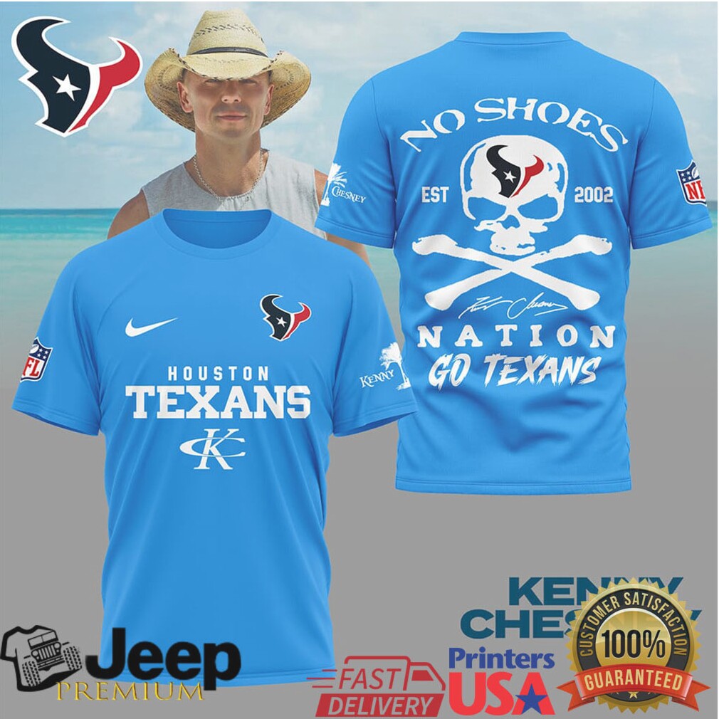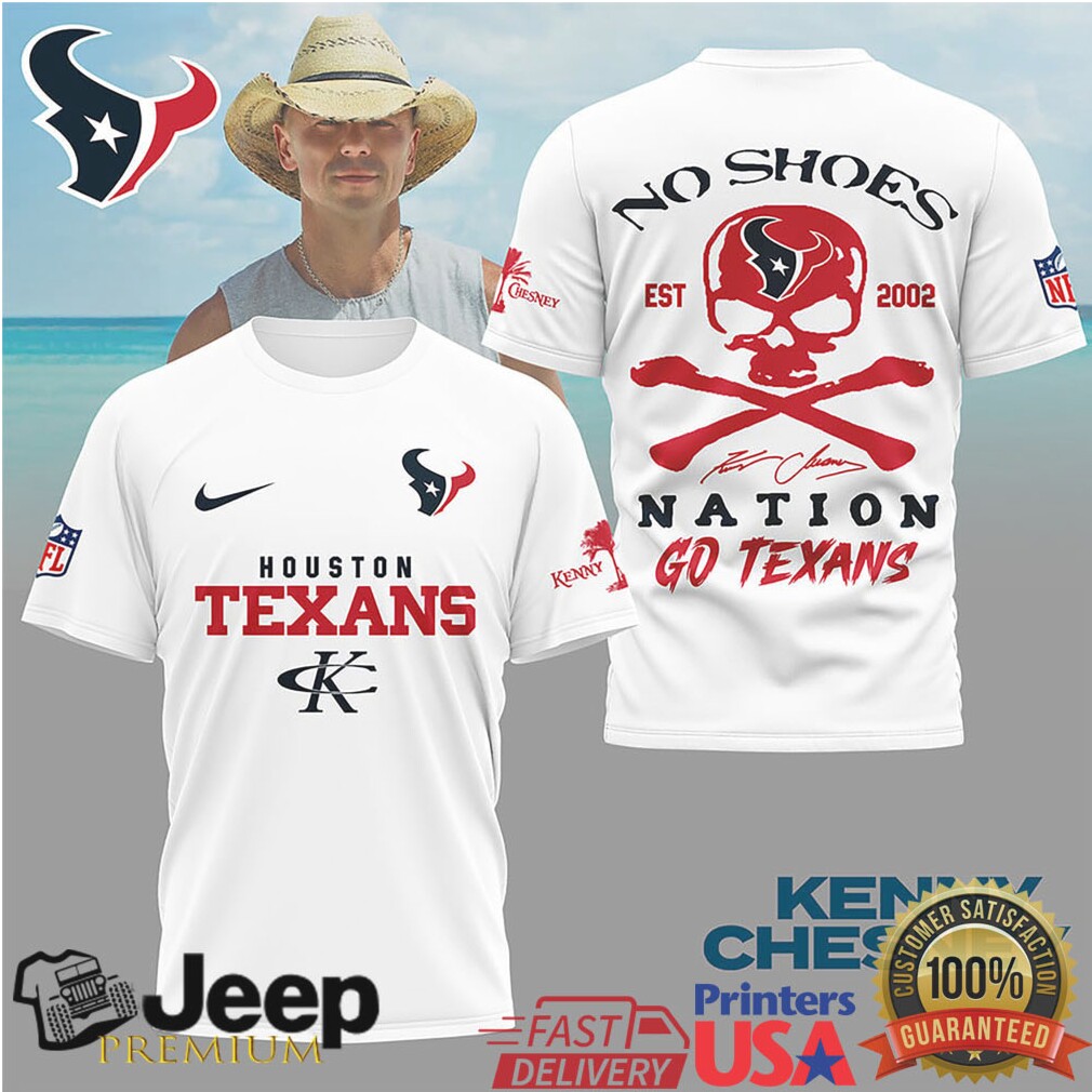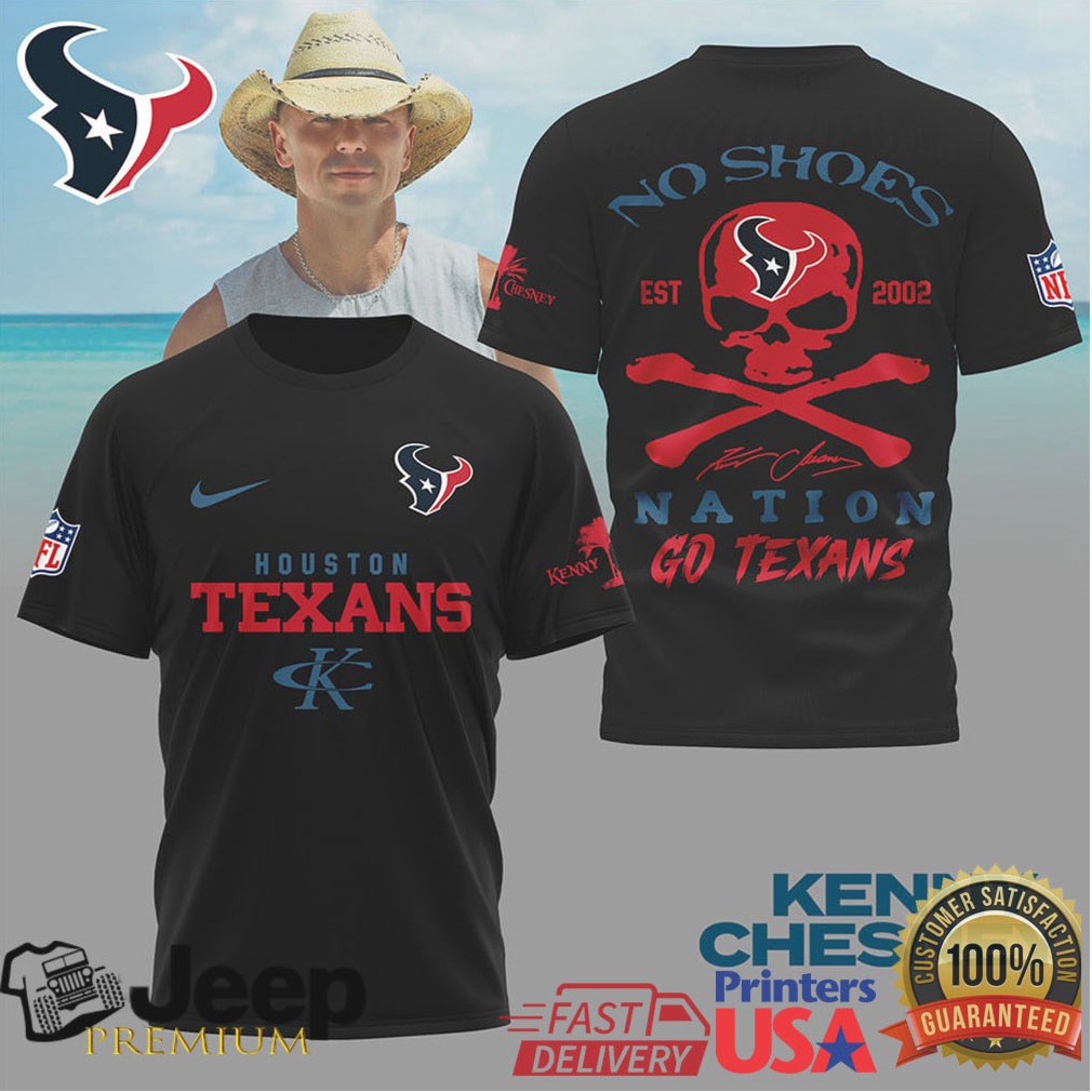 👕 About Kenny Chesney x Houston Texans No Shoes Nation Skull T Shirt