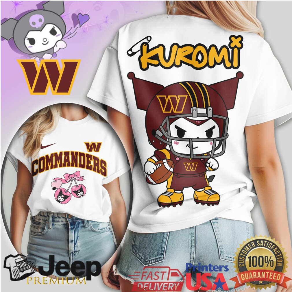 (Kuromi x Washington Commanders NFL Women’s T Shirt Cute Anime Football Fan Apparel)The Big 12 produced the shock of the morning as the West Virginia Mountaineers pulled off a dramatic 62–61 upset over #22 Kansas at the WVU Coliseum. The Mountaineers, led by Eduardo Andre’s 15 points and 4 blocks, held off a late Jayhawk rally to secure their biggest win of the season. The student section, completely draped in gold-and-blue Kuromi x Washington Commanders NFL Women’s T Shirt Cute Anime Football Fan Apparel, stormed the court as the final buzzer sounded, celebrating a signature win that will surely shake up the national rankings on Monday. For Kansas, the loss highlights Kuromi x Washington Commanders NFL Women’s T Shirt Cute Anime Football Fan Apparel, as they move to 0–1 in conference play and look to find answers before their next matchup in Lawrence.