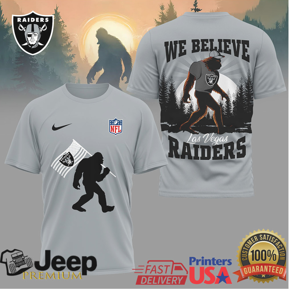 (Las Vegas Raiders Bigfoot We Believe NFL Graphic T Shirt)While the league is never predictable, a first championship for the Oklahoma City Thunderβcoupled with a historically strong start to the 2025-26 season and an embarrassment of draft assetsβhas created a spectre of impending dynasty. Shai Gilgeous-Alexander remains the centerpiece, and with Isaiah Hartenstein and Chet Holmgren forming an awesome tandem in the post, they are the odds-on favorites to repeat in 2026. Management also made targeted additions like custom team Las Vegas Raiders Bigfoot We Believe NFL Graphic T Shirt for the staff without overhauling a system that was working, allowing them to focus on execution rather than rebuilding.