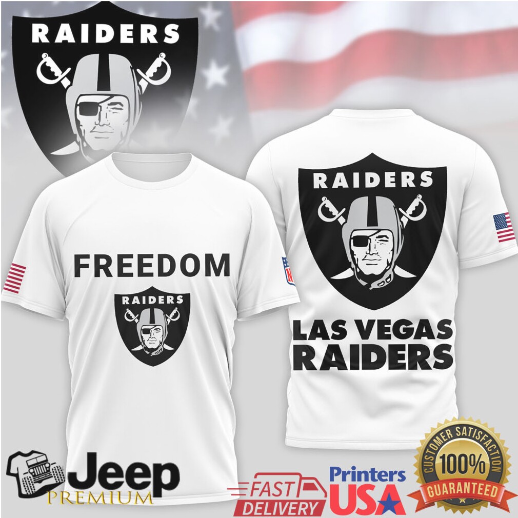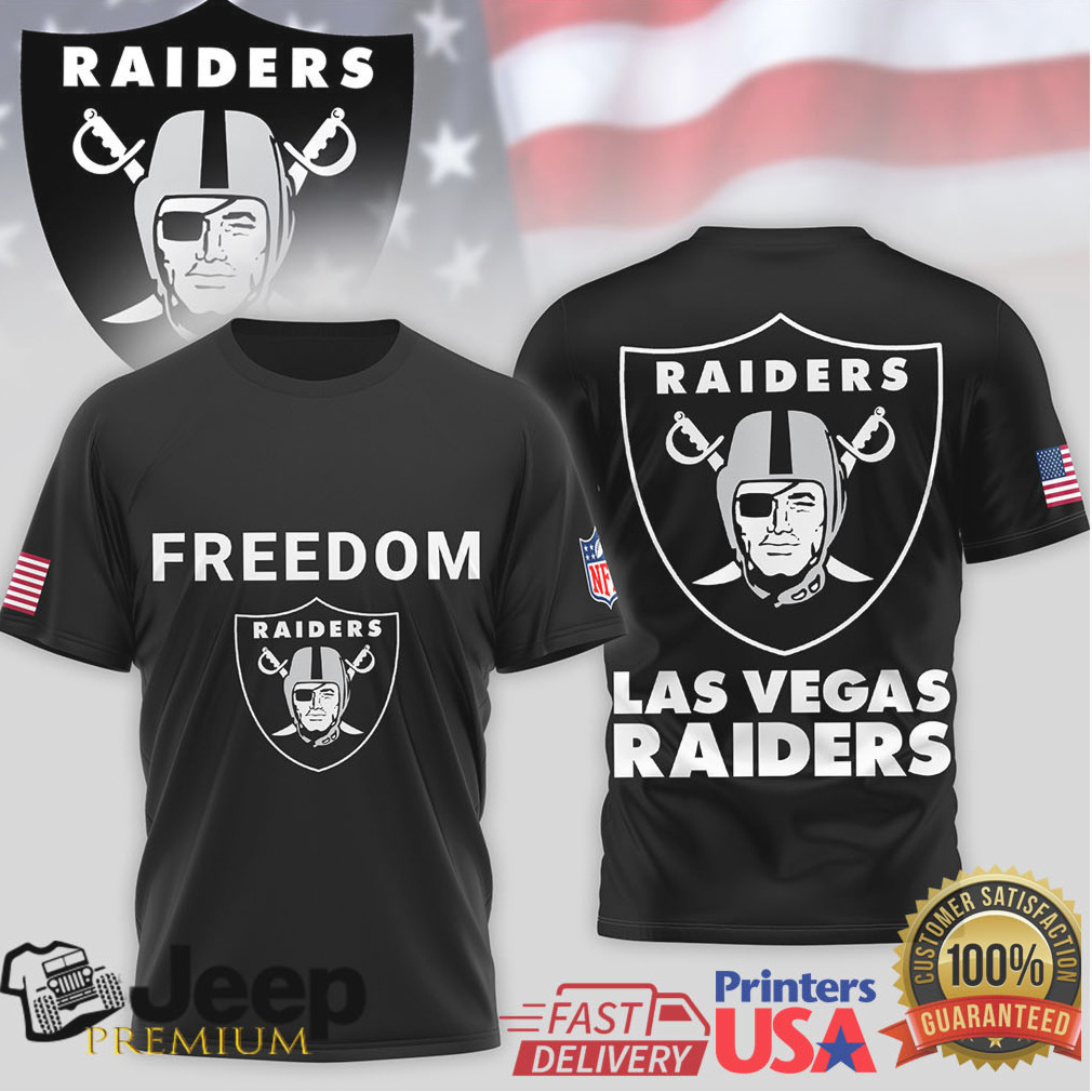 No matter how poor you are, you can play soccer if you can afford a ball. Basketball is also pretty cheap to play but while one can draw an outline of a soccer goal on the sand, you need at least to be able to put up a 10 foot hoop and backboard to play it properly. Maintenance of infrastructures in basketball is very difficult. You must have a specific field for it. African and Latin American children often play football in slums with ease, which is why they have been able to nurture some of the finest football gems. In basketball, size matters. The requirement in basketball is harsher. You have to be tall enough to play, which means dwarves can’t compete. Football is simple, you don’t have to be big to compete, you just need to be capable. In football, scoring is a matter of quality, because going into the net isn’t free. A major difference with basketball is, in football, there is a goalkeeper serving as Las Vegas Raiders Freedom American Flag Shield Logo NFL T Shirt, which creates greater intensity. While there are a lot of big wins in footballing history, scoring in football isn’t as easy as basketball.