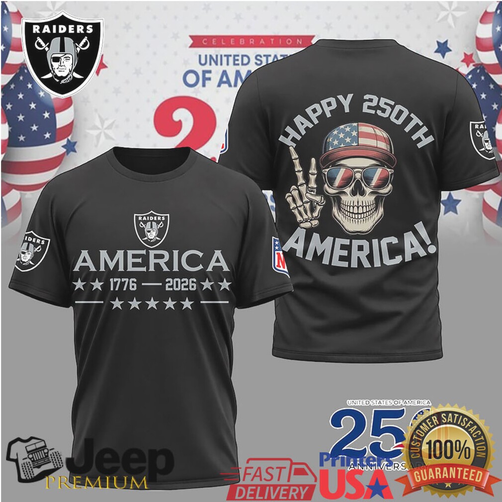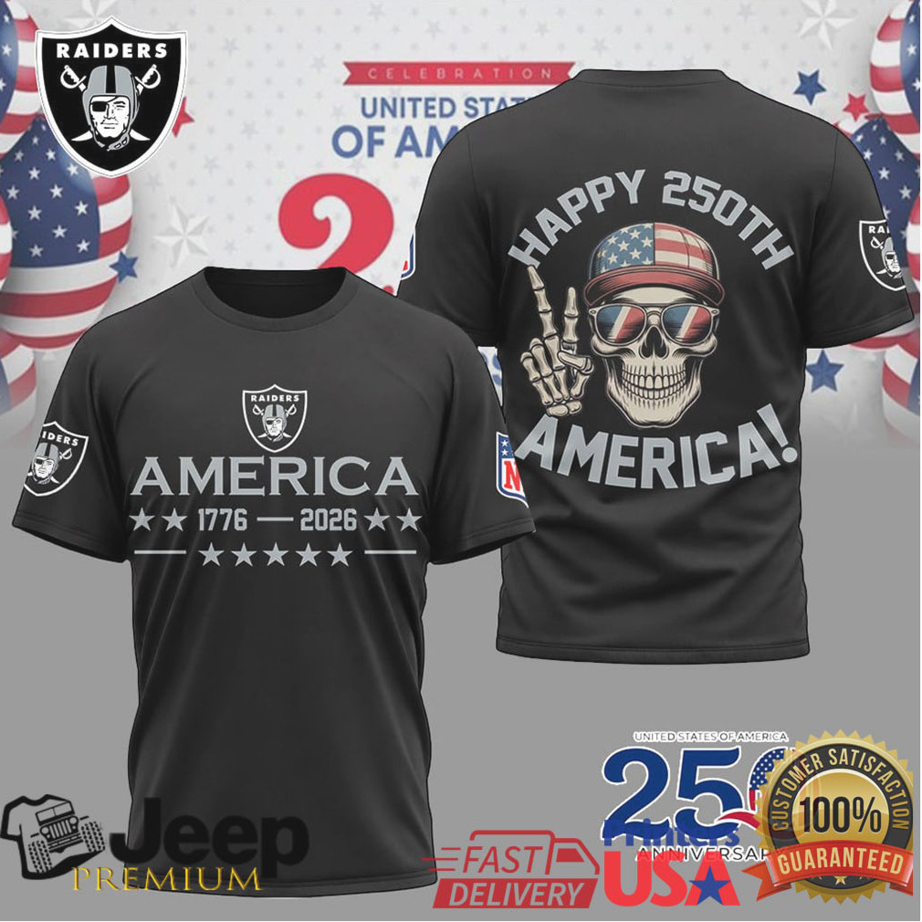 (Las Vegas Raiders Happy 250th Anniversary America 1776 2026 Skull T Shirt)Las Vegas Raiders Happy 250th Anniversary America 1776 2026 Skull T Shirt, Treat yourself or make a great gift for your loved ones