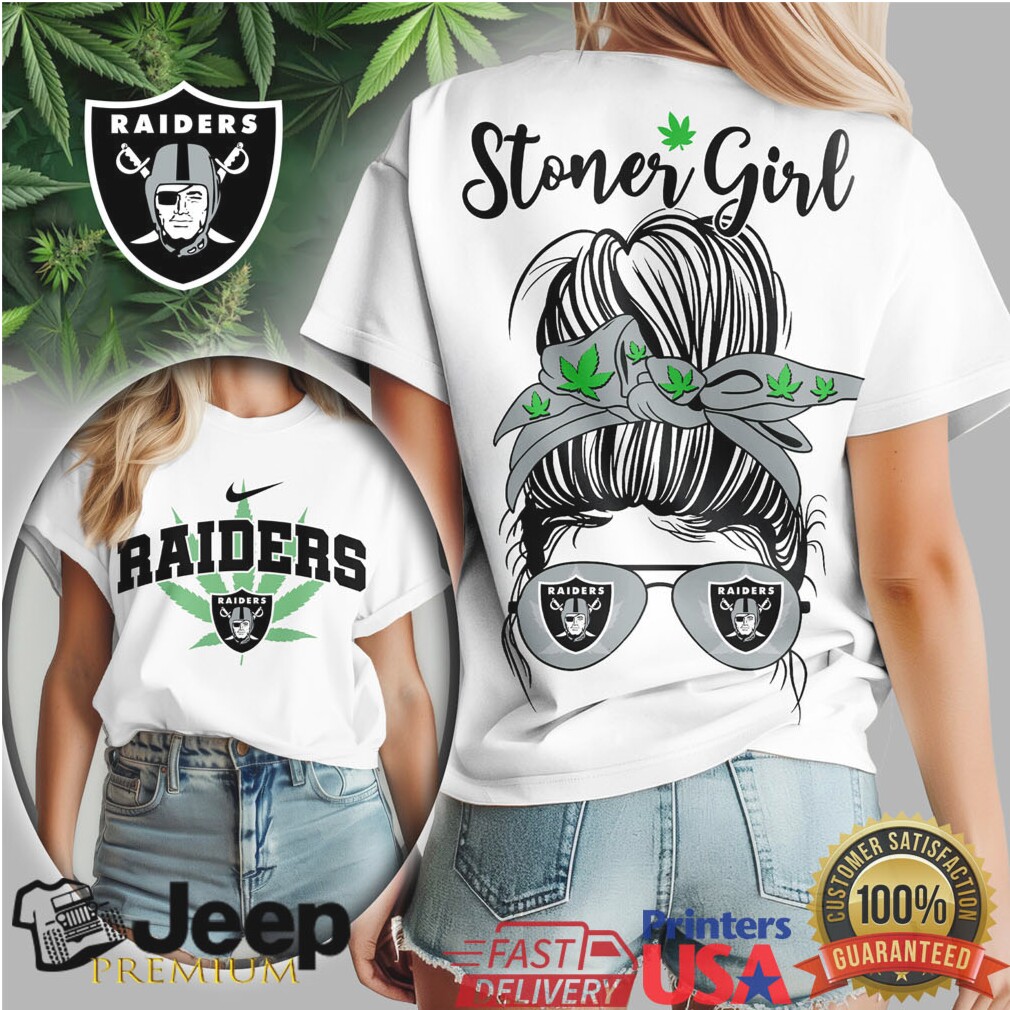 ()Las Vegas Raiders Stoner Girl Cannabis Leaf Messy Bun T shirt, Treat yourself or make a great gift for your loved ones