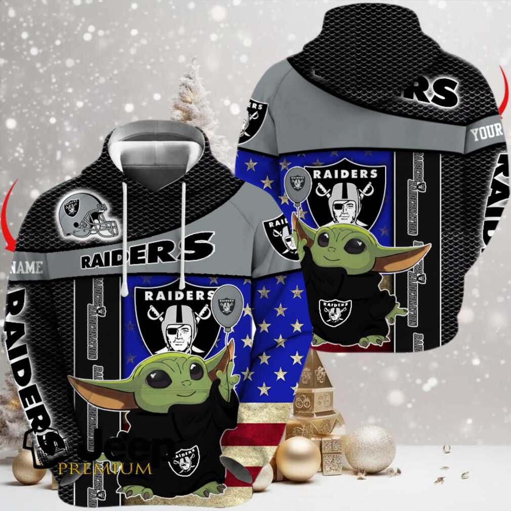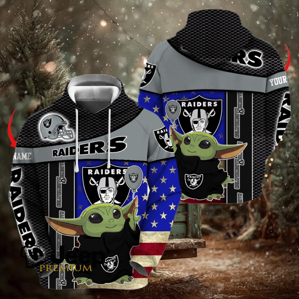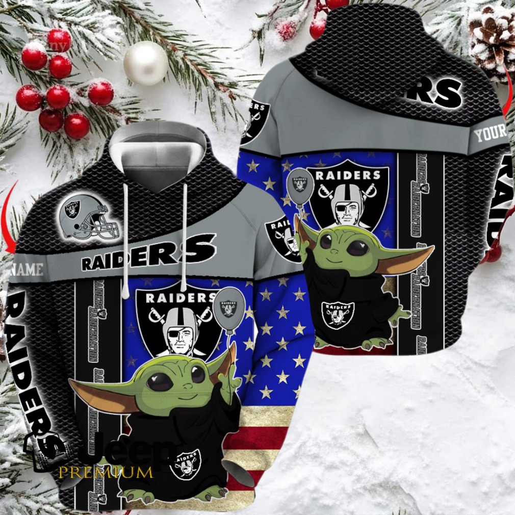 👕 About Las Vegas Raiders x Baby Yoda Holding Baloon Football Hoodie 3D Custom Name