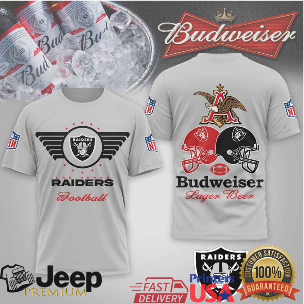 (Las Vegas Raiders x Budweiser Lager Beer Shield Logo T Shirt)Las Vegas Raiders x Budweiser Lager Beer Shield Logo T Shirt, Treat yourself or make a great gift for your loved ones