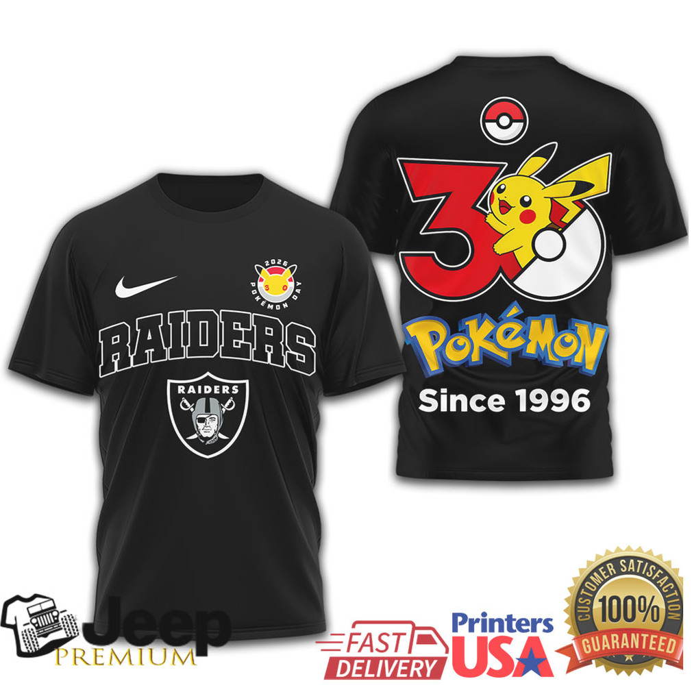 👕 About Las Vegas Raiders x Pokémon 30th Anniversary Pikachu T Shirt Since 1996
