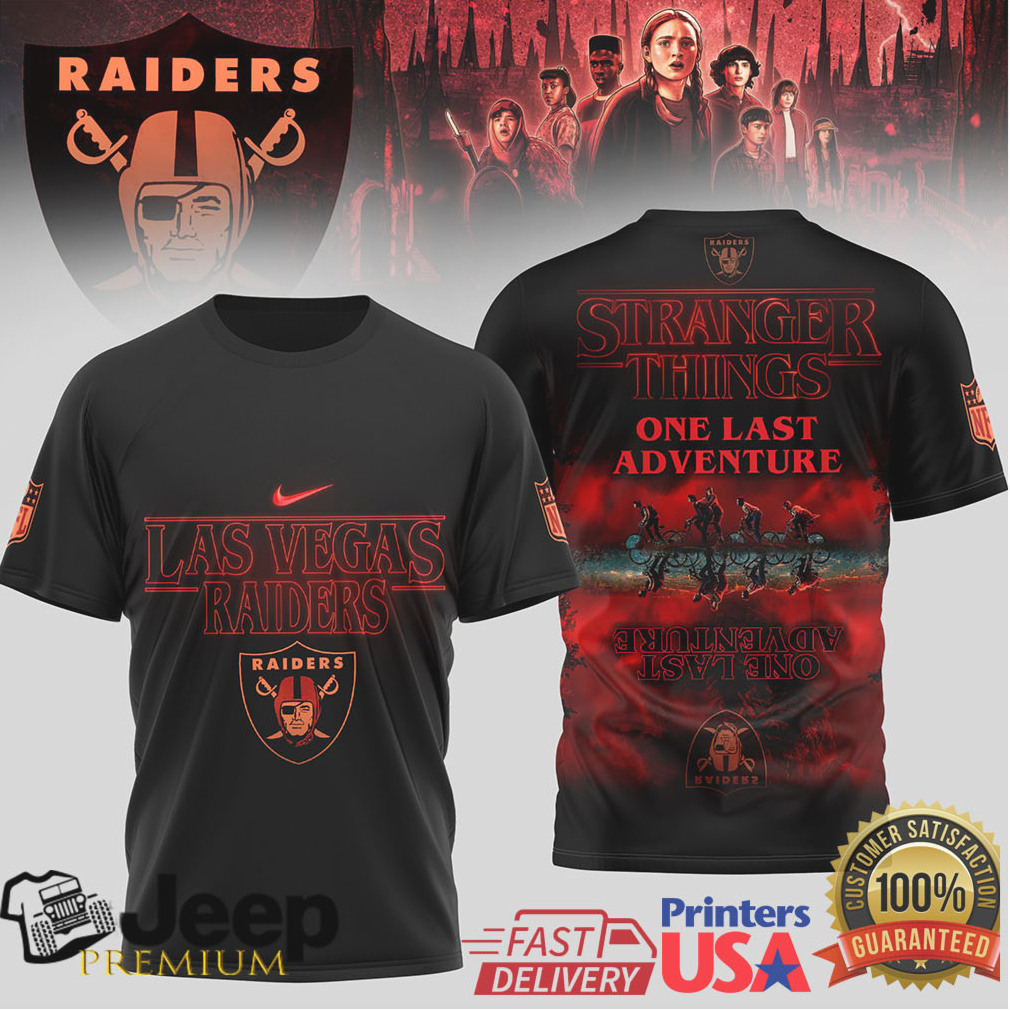 Today india vs s.africa match is played at ahmedabad, s.africa won the toss and elected to bowl, first 6 overs was so nice for india, because indian seam bowlers took 3 wickets, but we saw a good partnership between miller and brevis, they almost made a partnership of 100 runs, brevis was looking so aggressive, he got some good boundaries. Honestly speaking, there are no websites to watch cricket on-line without any delay. The reasons behind it are: 1. The contents over the internet are called Las Vegas Raiders x Stranger Things One Last Adventure T Shirt (Style A) which takes some time to get processed. 2. It has to be processed in order to transfer the data over IP rather than satellite network (DTH). 3. When we talk about content processing, it means content compression and encoding to make it available over the internet considering the bandwidth limitation. 4. Contents need to be transformed to IP packets and to play those IP packets on laptop or mobile phones, it introduces delay.