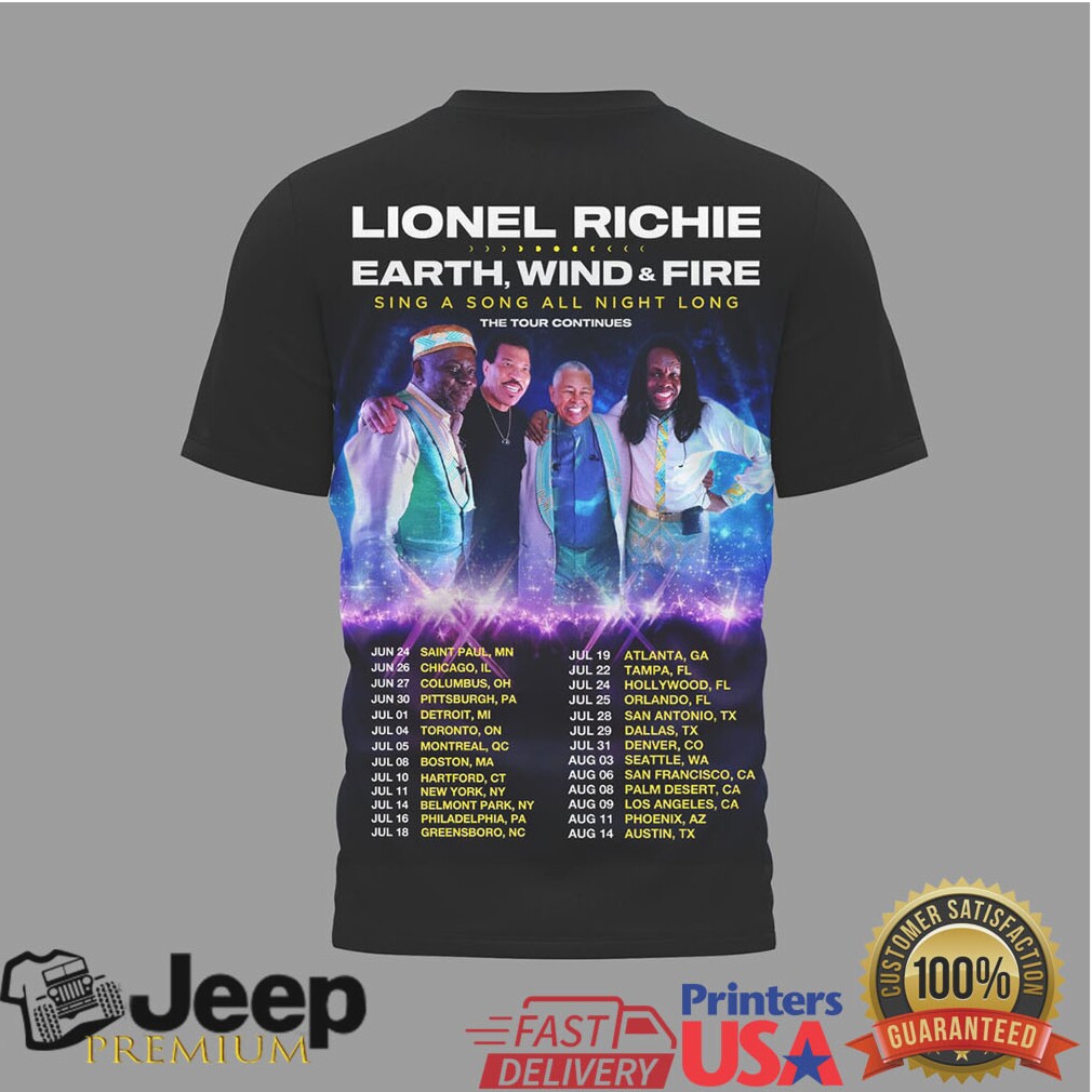 (Lionel Richie & Earth, Wind & Fire Sing A Song All Night Long Tour T Shirt)Lionel Richie & Earth, Wind & Fire Sing A Song All Night Long Tour T Shirt, Treat yourself or make a great gift for your loved ones