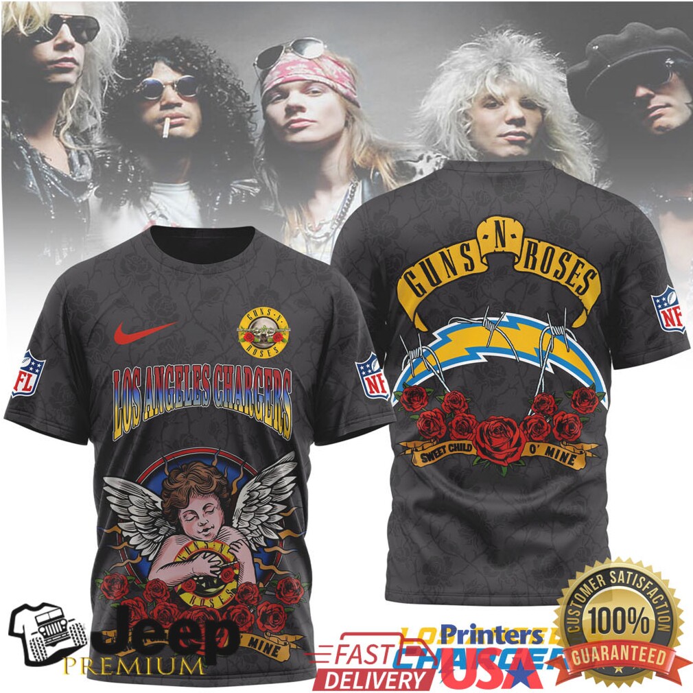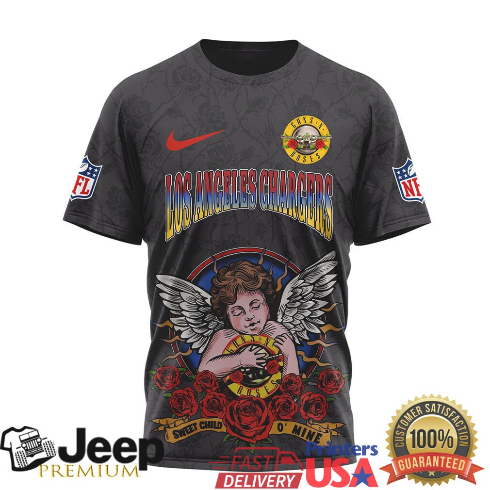 ()Los Angeles Chargers Official NFL Guns N’ Roses 3D Shirt, Treat yourself or make a great gift for your loved ones