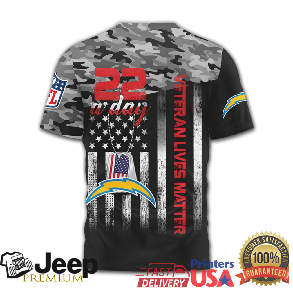 (Los Angeles Chargers Veteran Awareness T Shirt 22 A Day Veteran Lives Matter Camo)