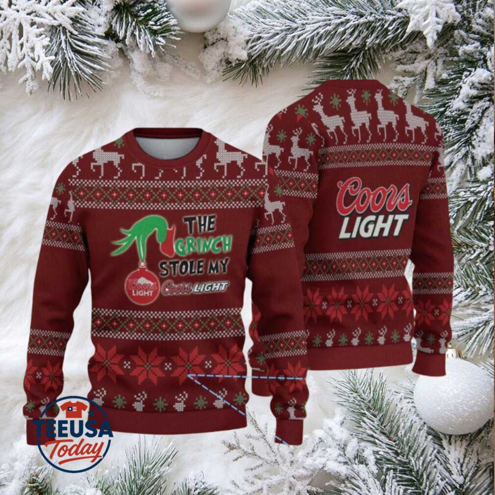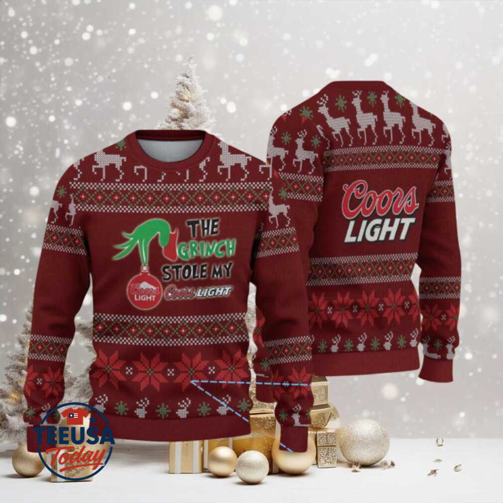 👕 About Maroon & Red Reindeer Pattern “The Grinch Stole My Coors Light” Ugly Christmas Sweater.jfif