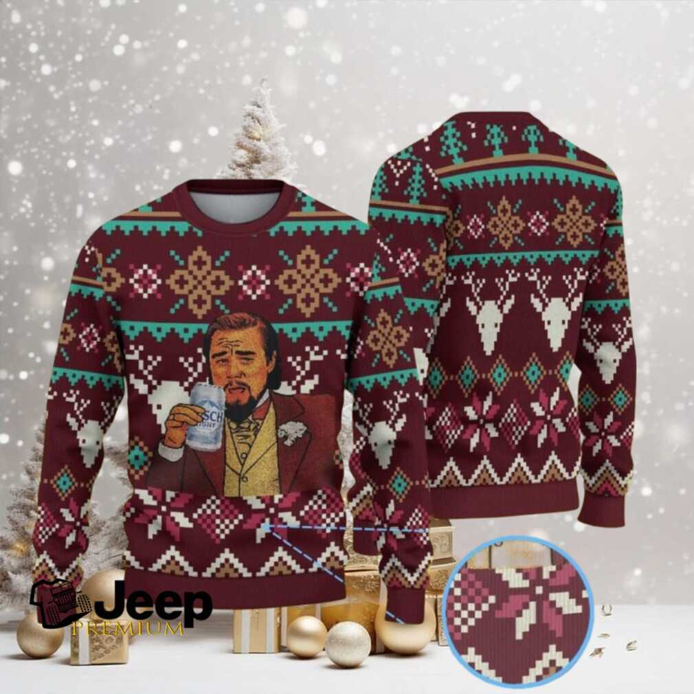 👕 About Maroon Ugly Christmas Sweater with Reindeer Skull and Snowflake Pattern, Funny Meme Leonardo DiCaprio Holding Busch Light Beer Design.jfif
