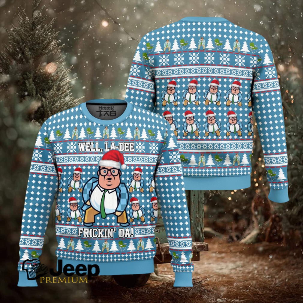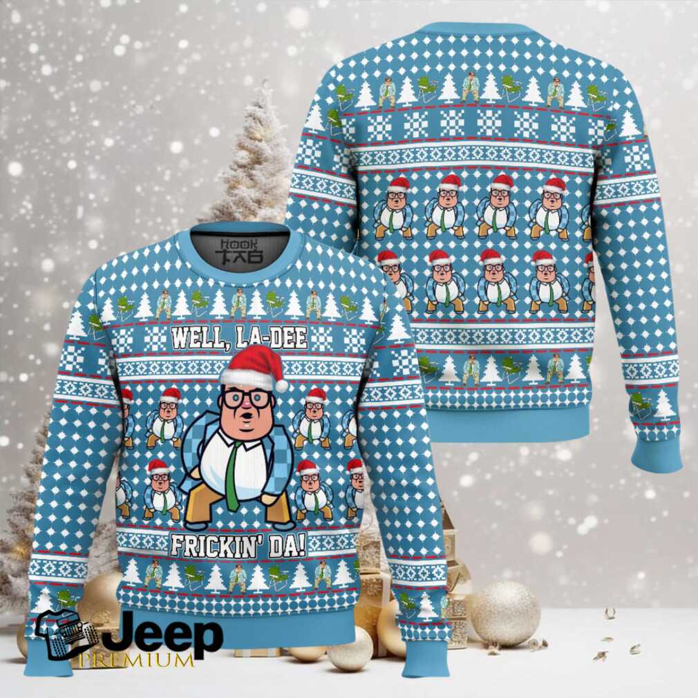The **Matt Foley Well, La Dee Frickin Da Saturday Night Live Ugly Christmas Sweater** is ideal for die-hard Saturday Night Live fans, especially those who cherish the golden age of sketch comedy and the unforgettable Chris Farley. It’s a perfect choice for ugly sweater contests, holiday office parties, or as a hilariously thoughtful gift for a friend or family member who appreciates a good belly laugh. Bring the spirit of motivation (and mild intimidation) to your holidays!