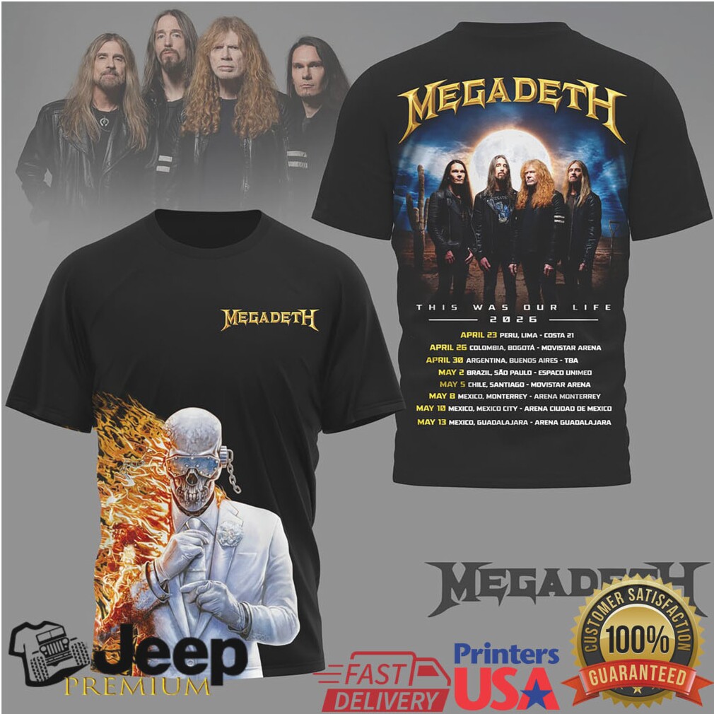 👕 About Megadeth This Was Our Life 2026 World Tour Flaming Skull T Shirt