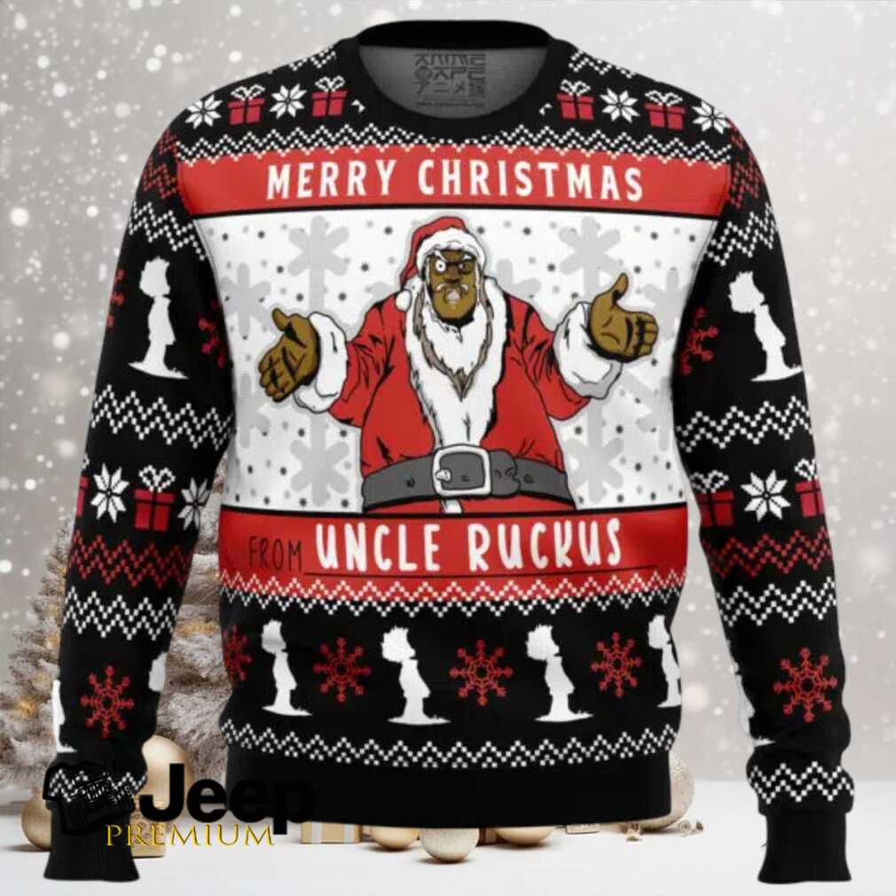 This Uncle Ruckus Ugly Christmas Sweater brings the iconic character from The Boondocks to your holiday wardrobe. Picture yourself at a Christmas party, sparking laughter and maybe a little controversy! More than just a sweater, it’s a way to connect with fellow fans and show off your unique and slightly edgy taste. Ideal for Boondocks enthusiasts who want to make a bold and hilarious statement during the holidays. Made from a soft, comfortable blend, this sweater will keep you warm all season long. Available in various sizes for a great fit.